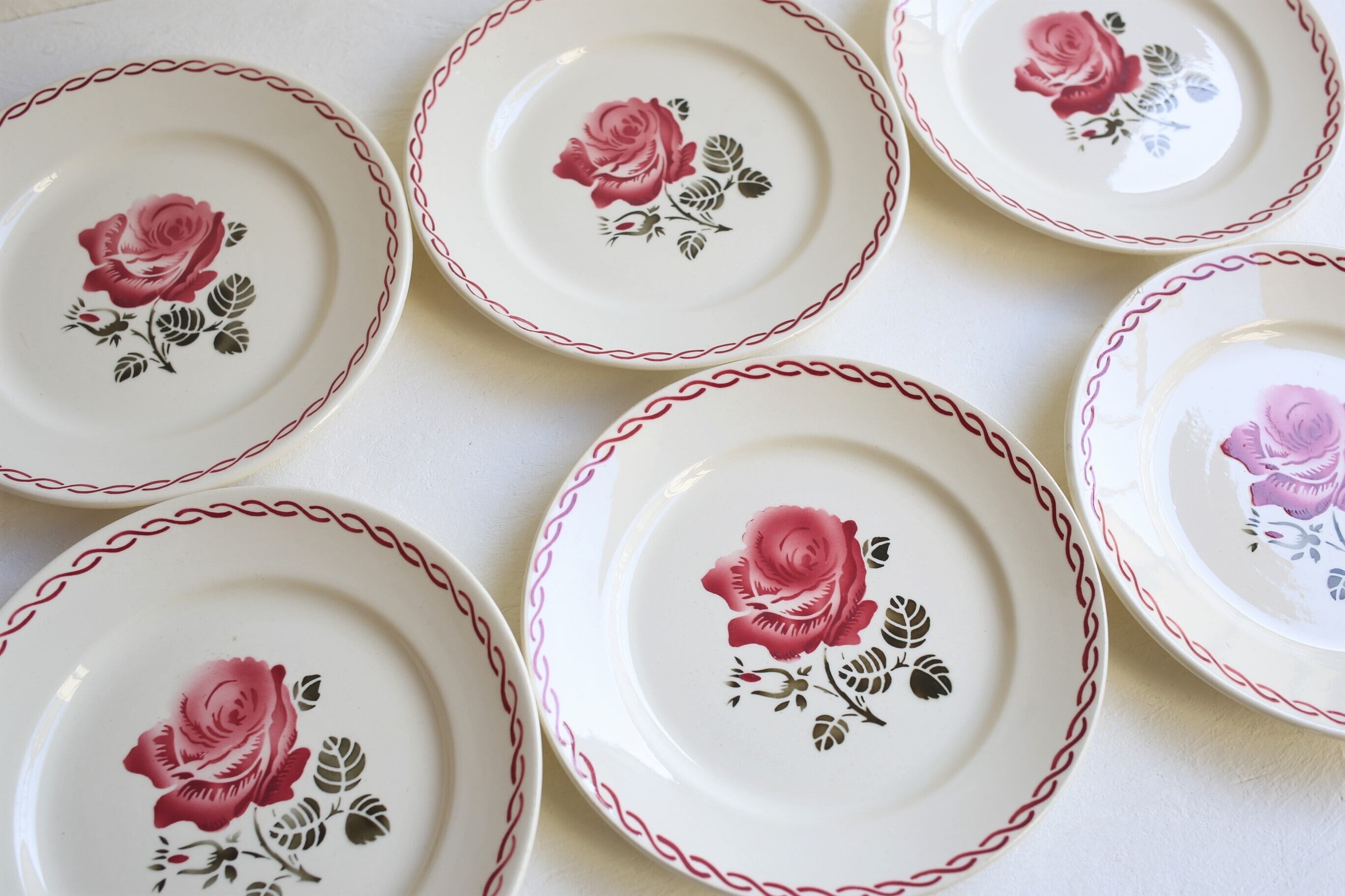 フランス アンティーク ヴィンテージ Badonviller バドンヴィレー ローズ 平皿 N-03691af