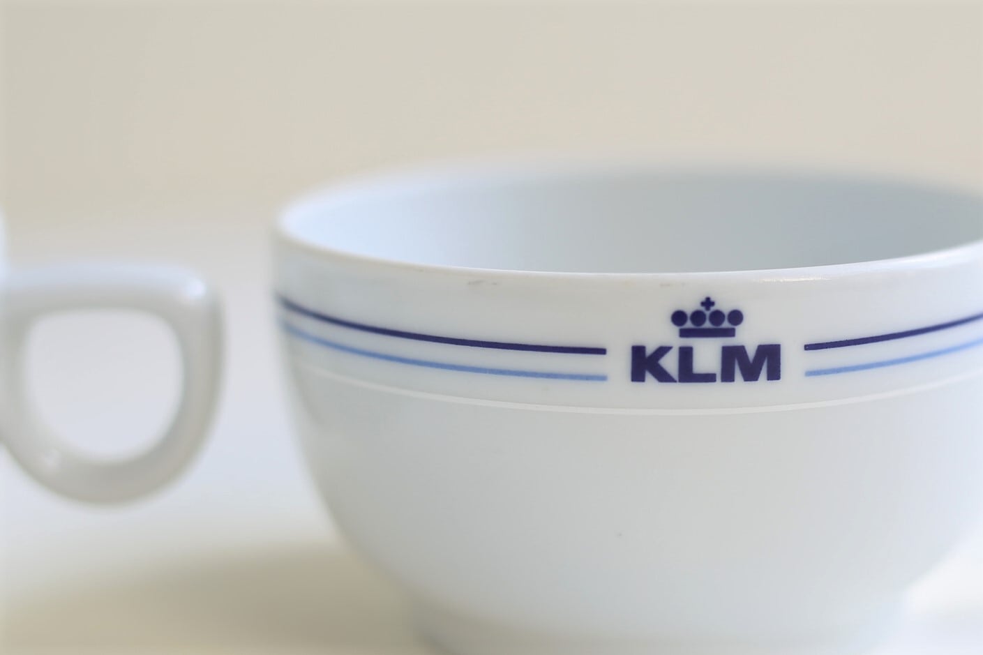 フランスの蚤の市で見つけたKLMオランダ航空の陶器製のカップとトレイです。