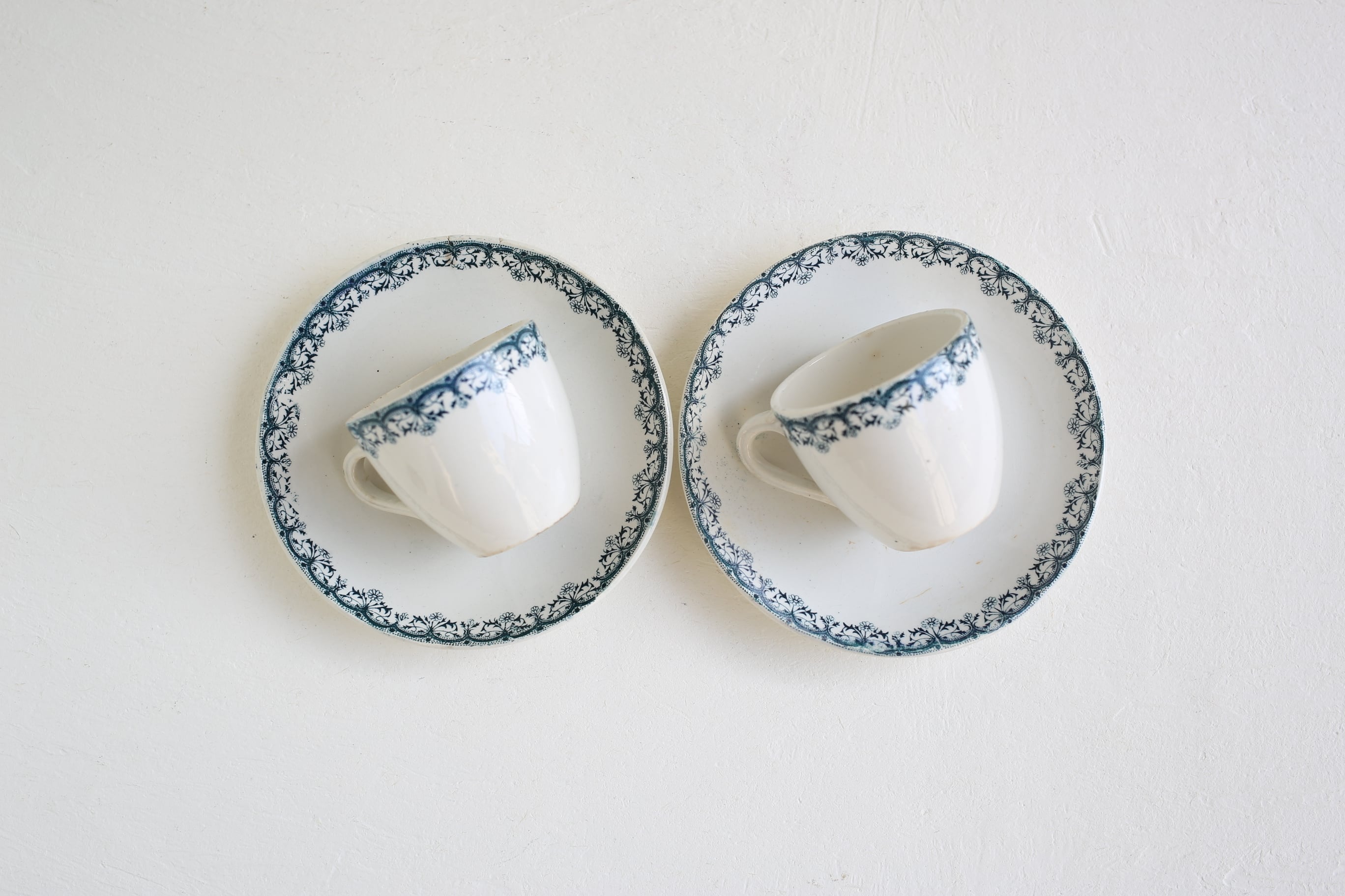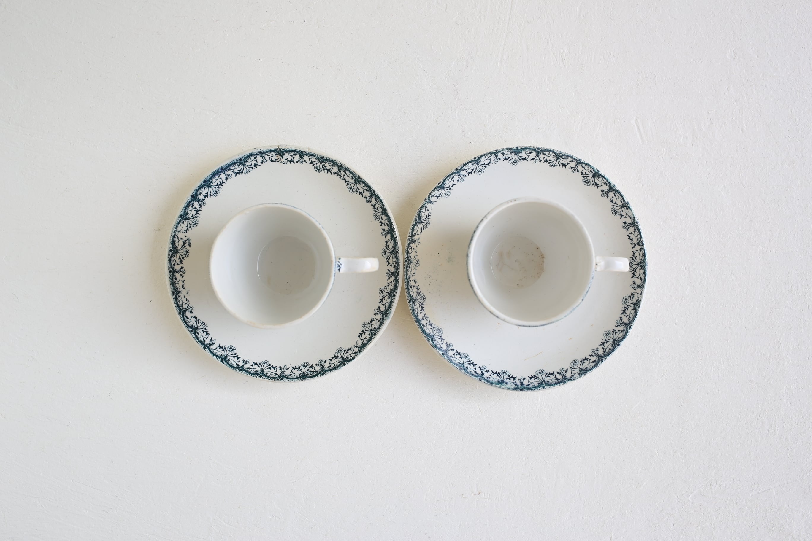 フランス アンティーク ヴィンテージ MOULIN DES LOUPS カップ&ソーサー 2脚セット N-03698