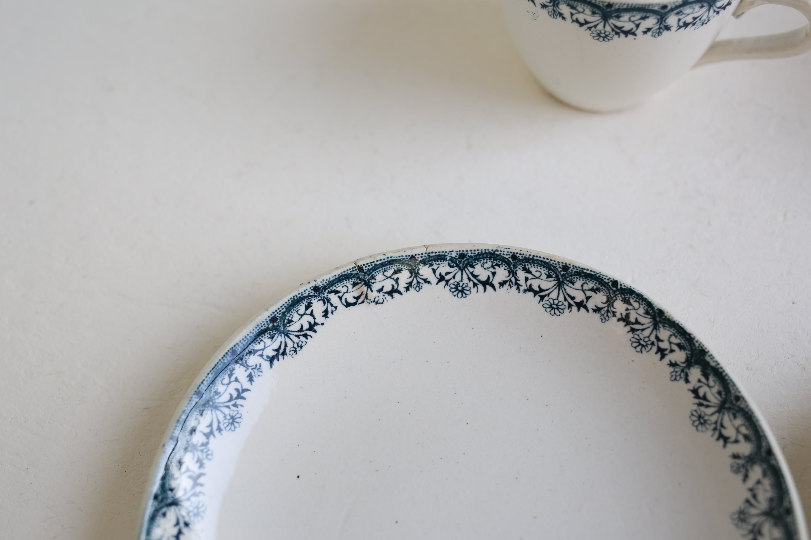 上記のような状態ですが、目立つカケやヒビがあるわけではなく、アンティークのカップ&ソーサーとしては悪くない状態です。
