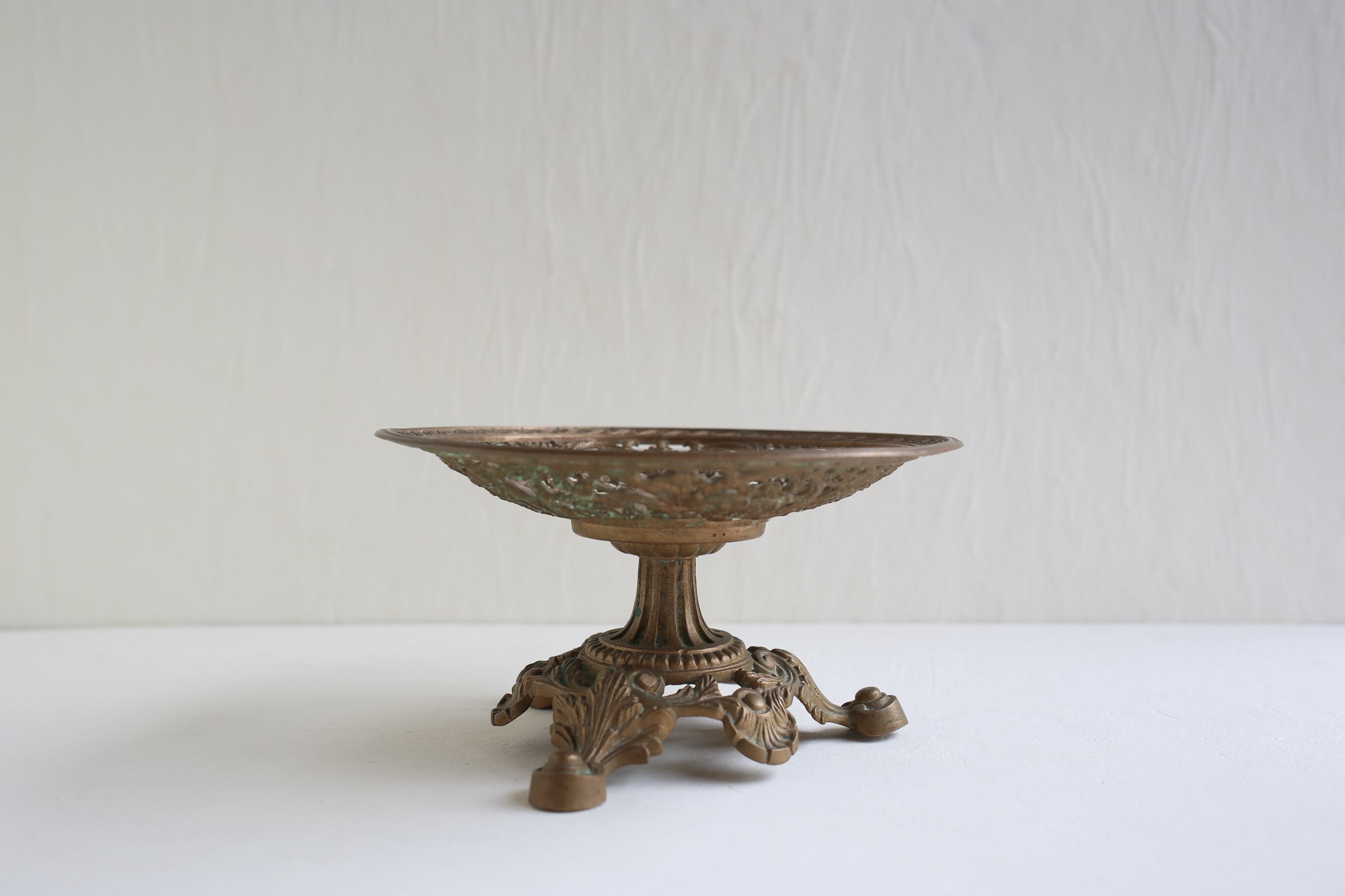 フランス アンティーク ヴィンテージ ブロンズ製(銅合金?) 脚付き 飾り台 コンポティエ N-03730a