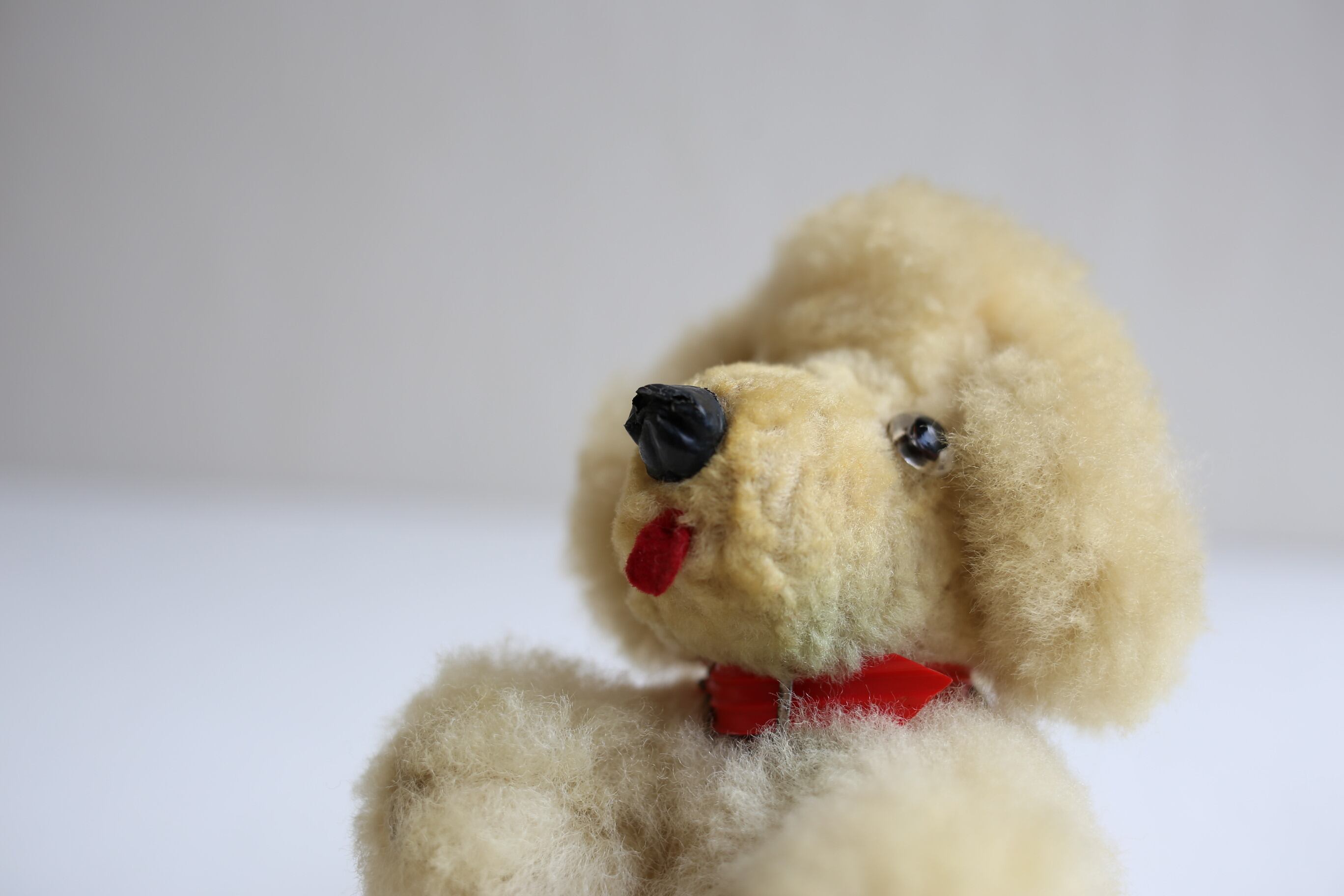 フランスからテディベアに混じってやってきたプードルのぬいぐるみです。