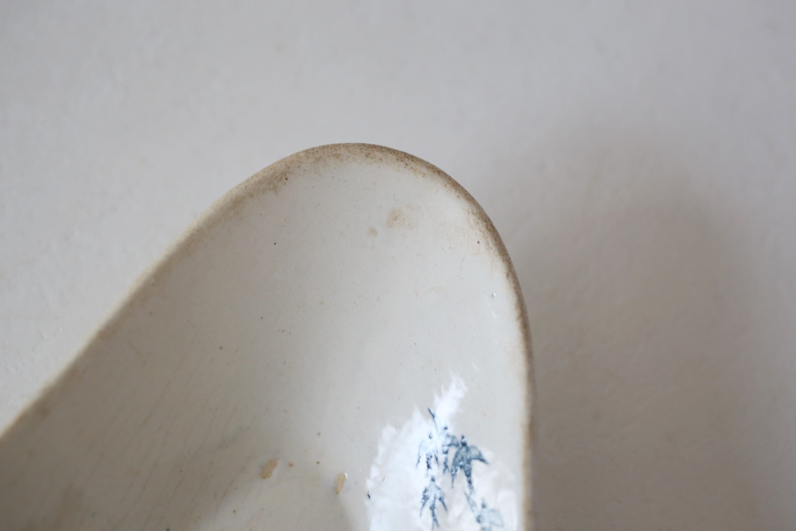 貫入染みや薄っすらと入った経年による色付きがアンティークプレートならではの魅力を増しています。