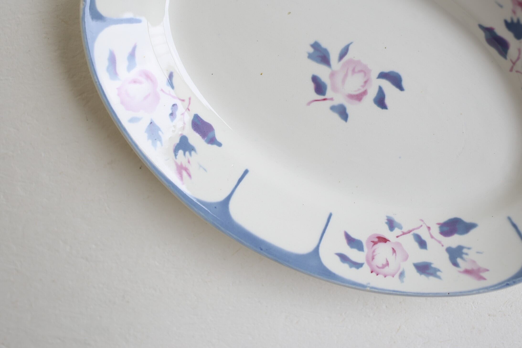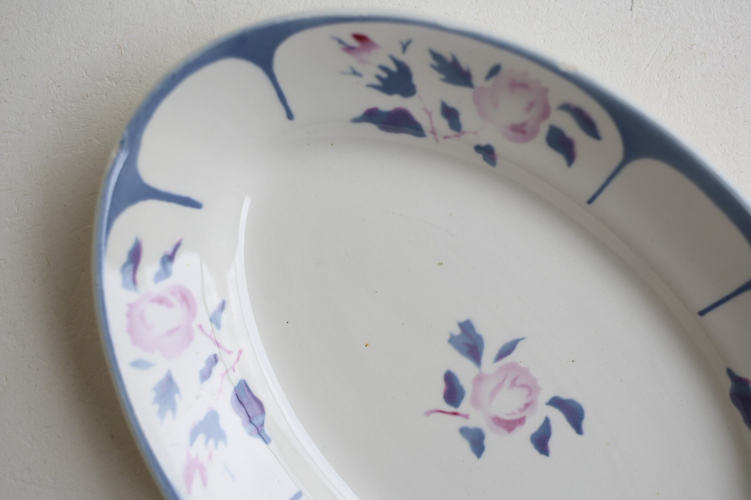 淡く薄いブルーグレーとピンク(赤)で描かれたローズ柄がなんともアンニュイな雰囲気を漂わせた素敵なプレートです。