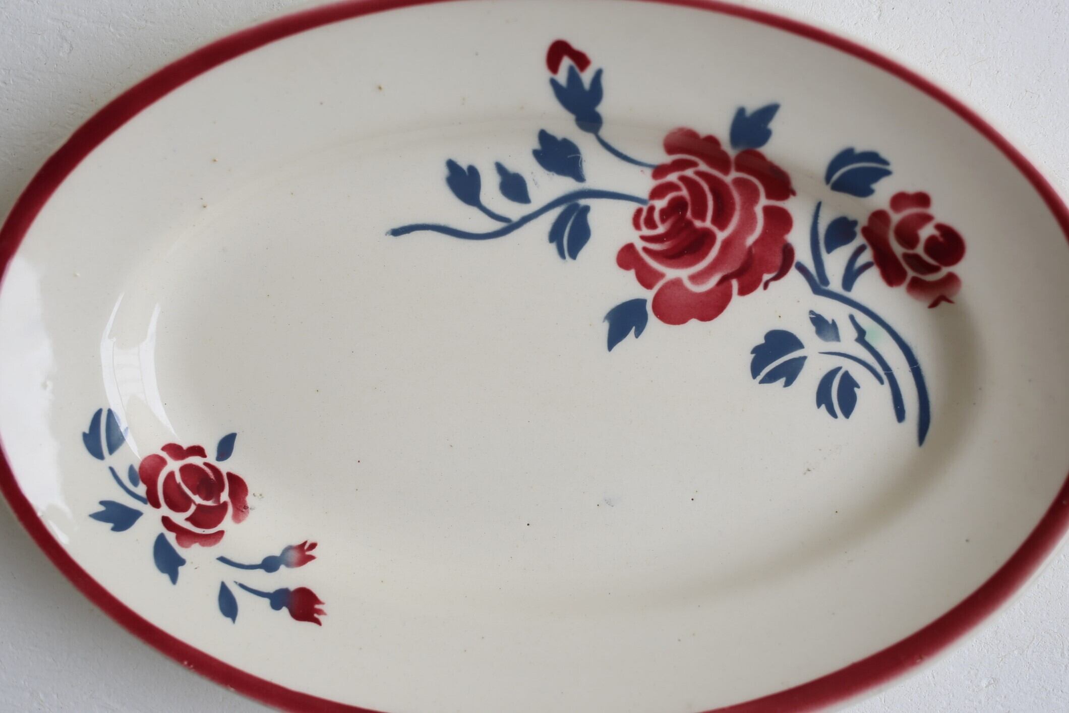 フランス アンティーク ヴィンテージ Badonviller バドンヴィレー オーバル皿 ローズ① N-03812