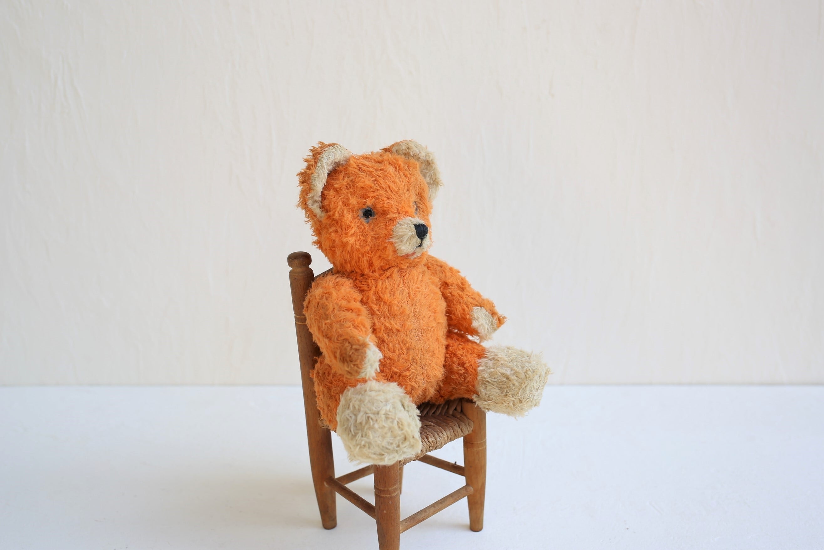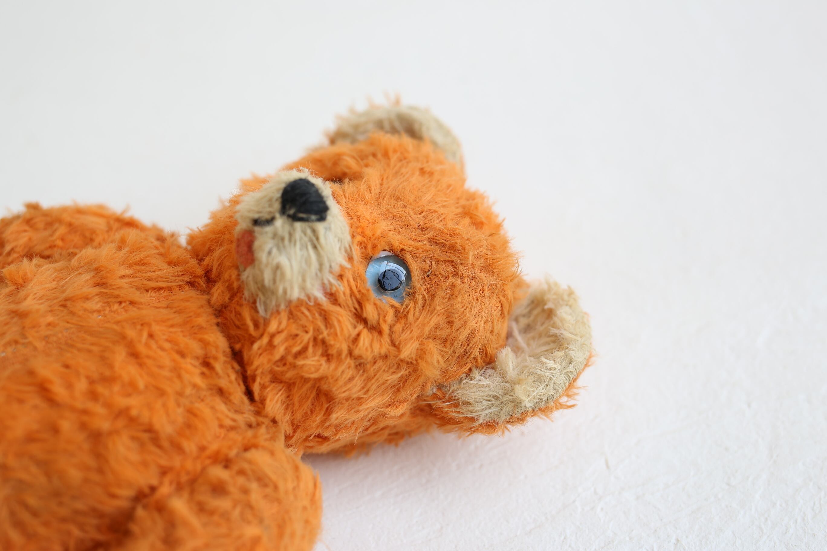 フランス アンティーク ヴィンテージ テディベア オレンジ×ブルーアイの小さなベア 21cm N-03796