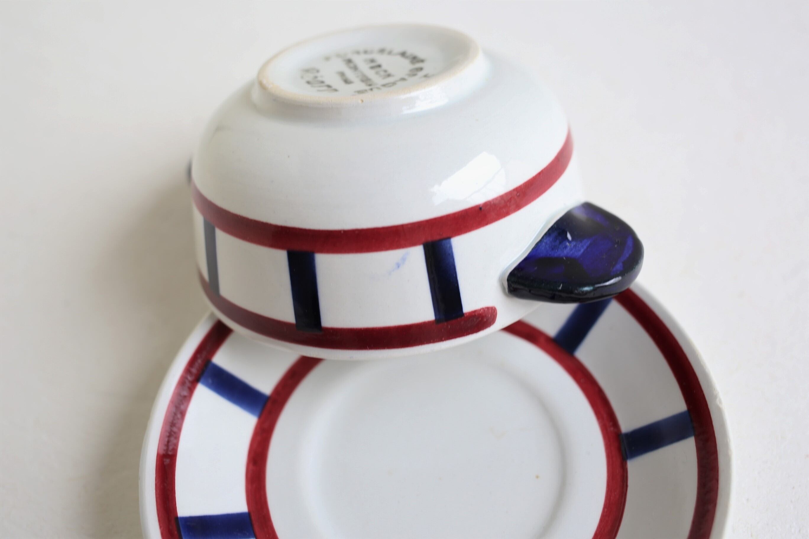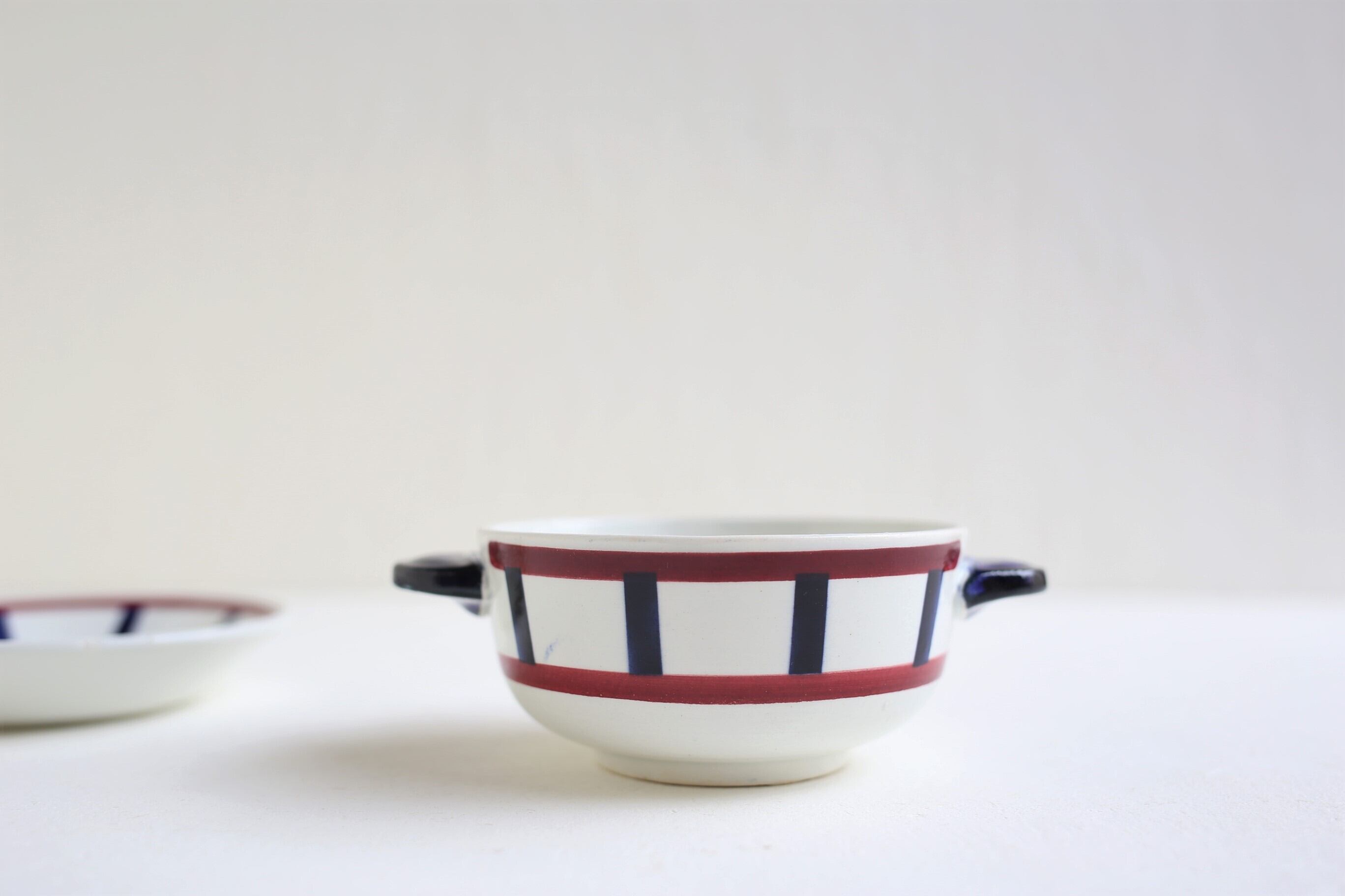 フランス アンティーク クレイユモントロー 『Béarn』バスク柄 耳付きプチボウル カップ&ソーサー N-03891e