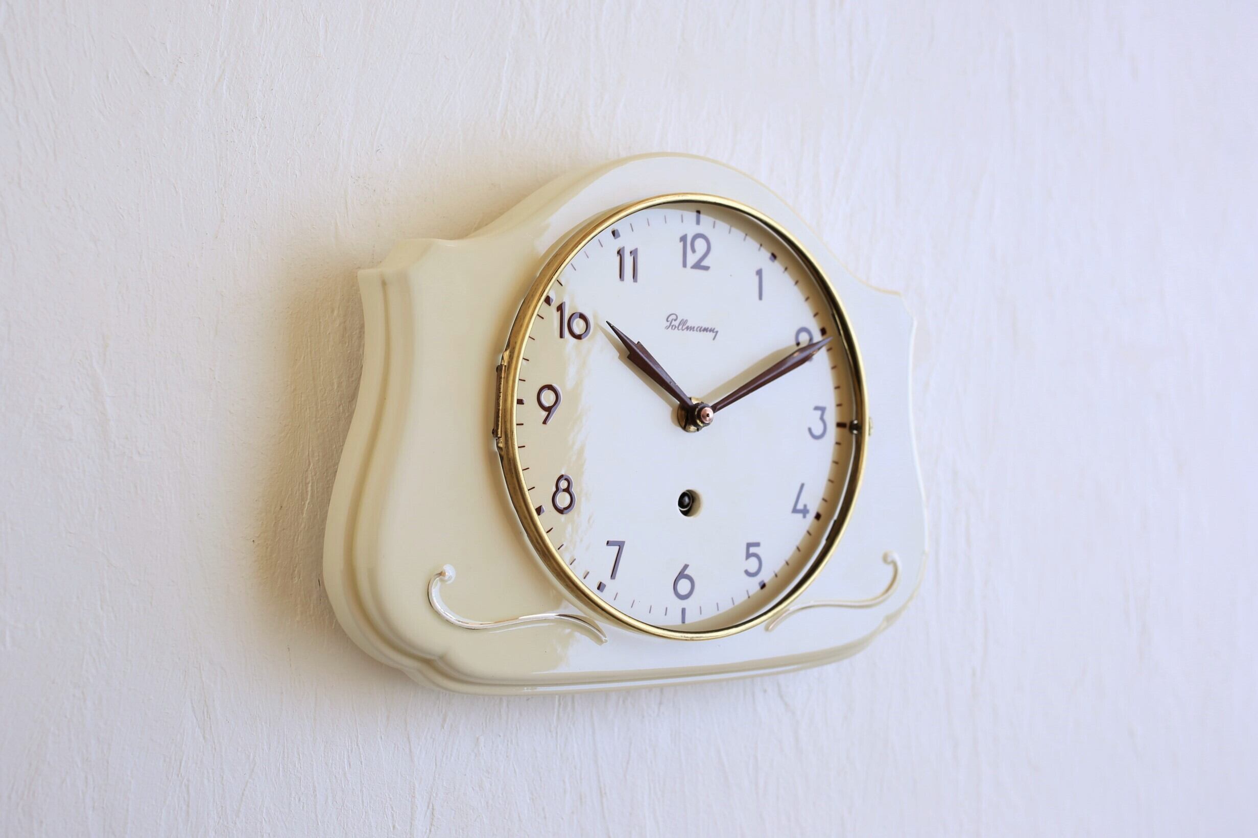 ドイツ ヴィンテージ Pollmann (Junghans) 陶器 壁掛け時計 ゼンマイ機械式 (ガラスなし)N-03921