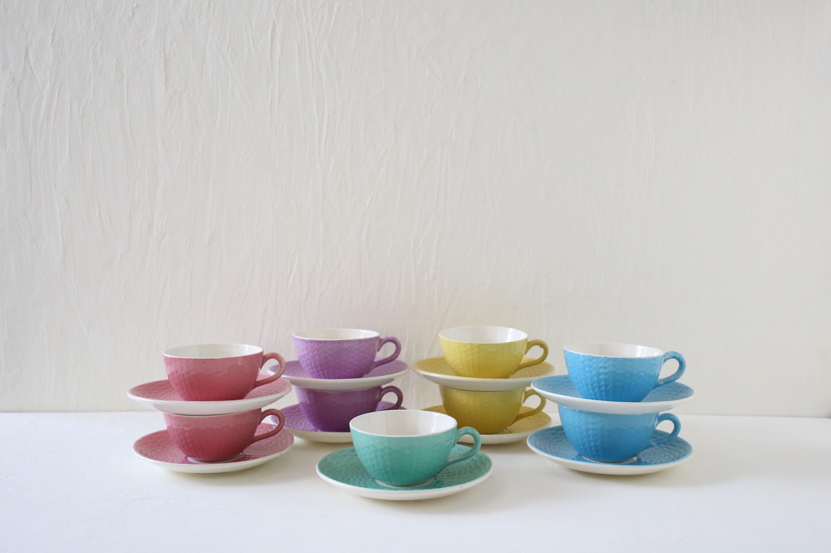 フランス DIGOIN&SARREGUEMINES のパニエの編み込みのような柄が素敵なカップ&ソーサーです。