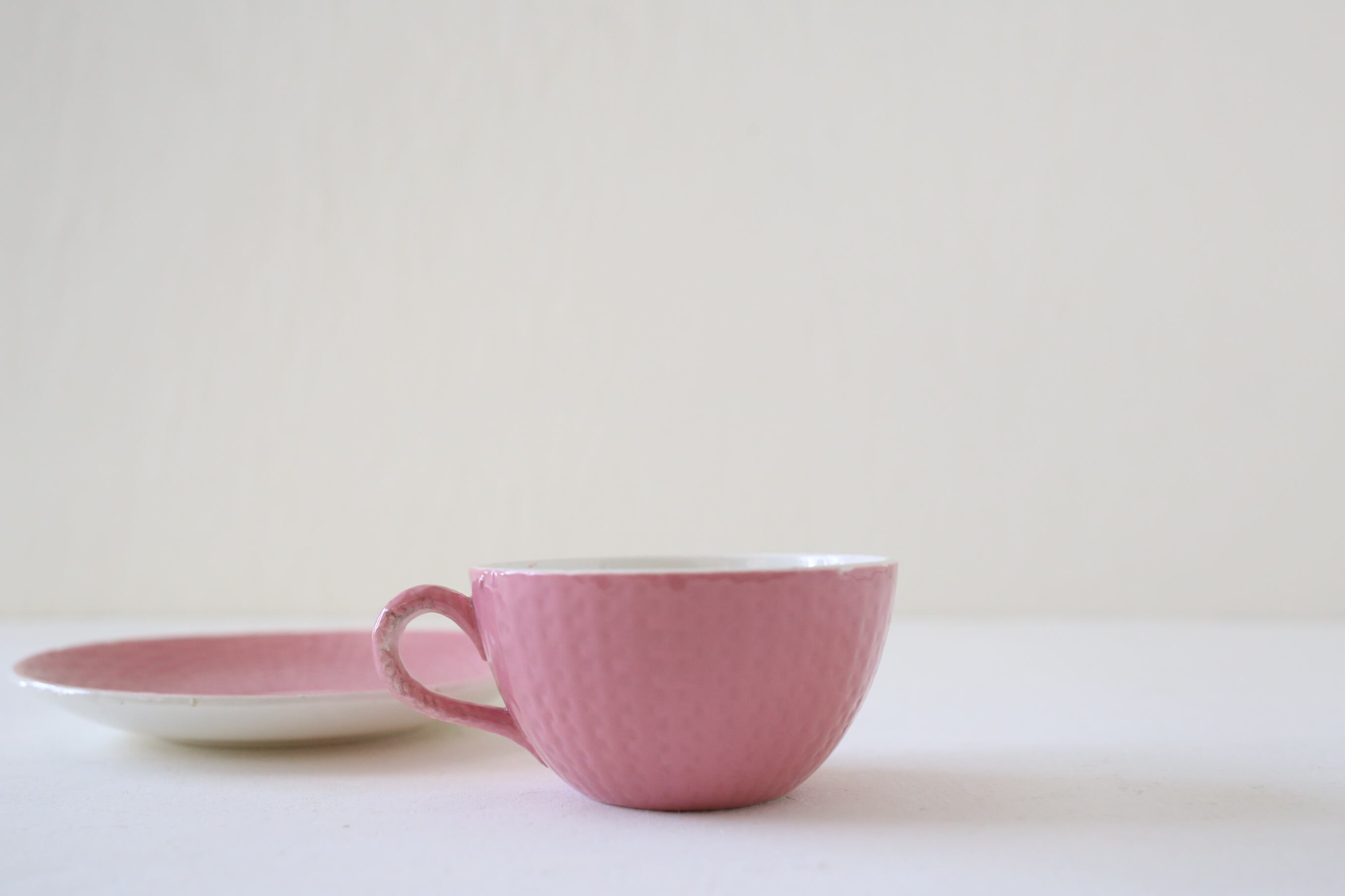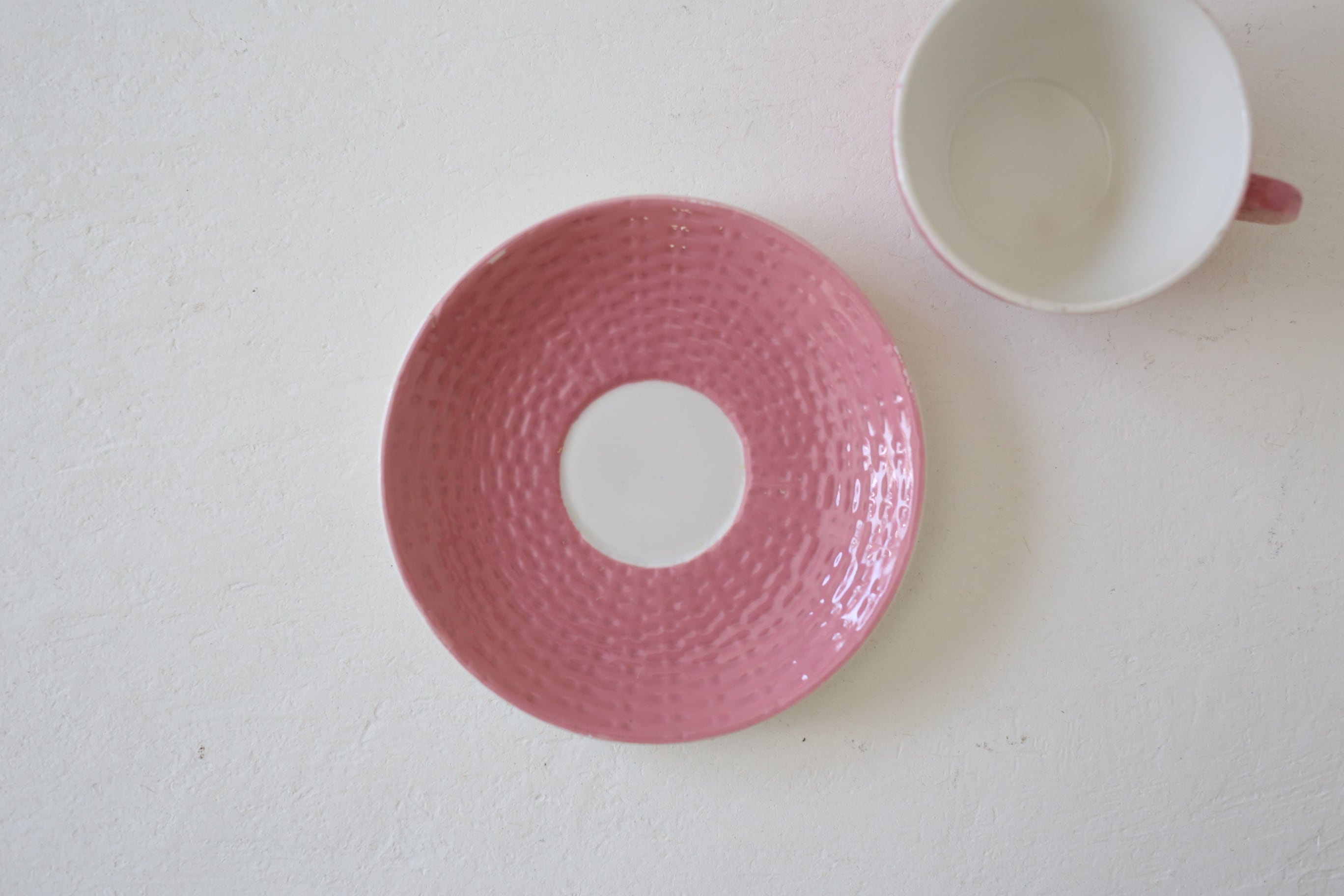 フランス アンティーク ヴィンテージ DIGOIN&SARREGUEMINES サルグミンヌ カップ&ソーサー(ピンク)N-03809ra