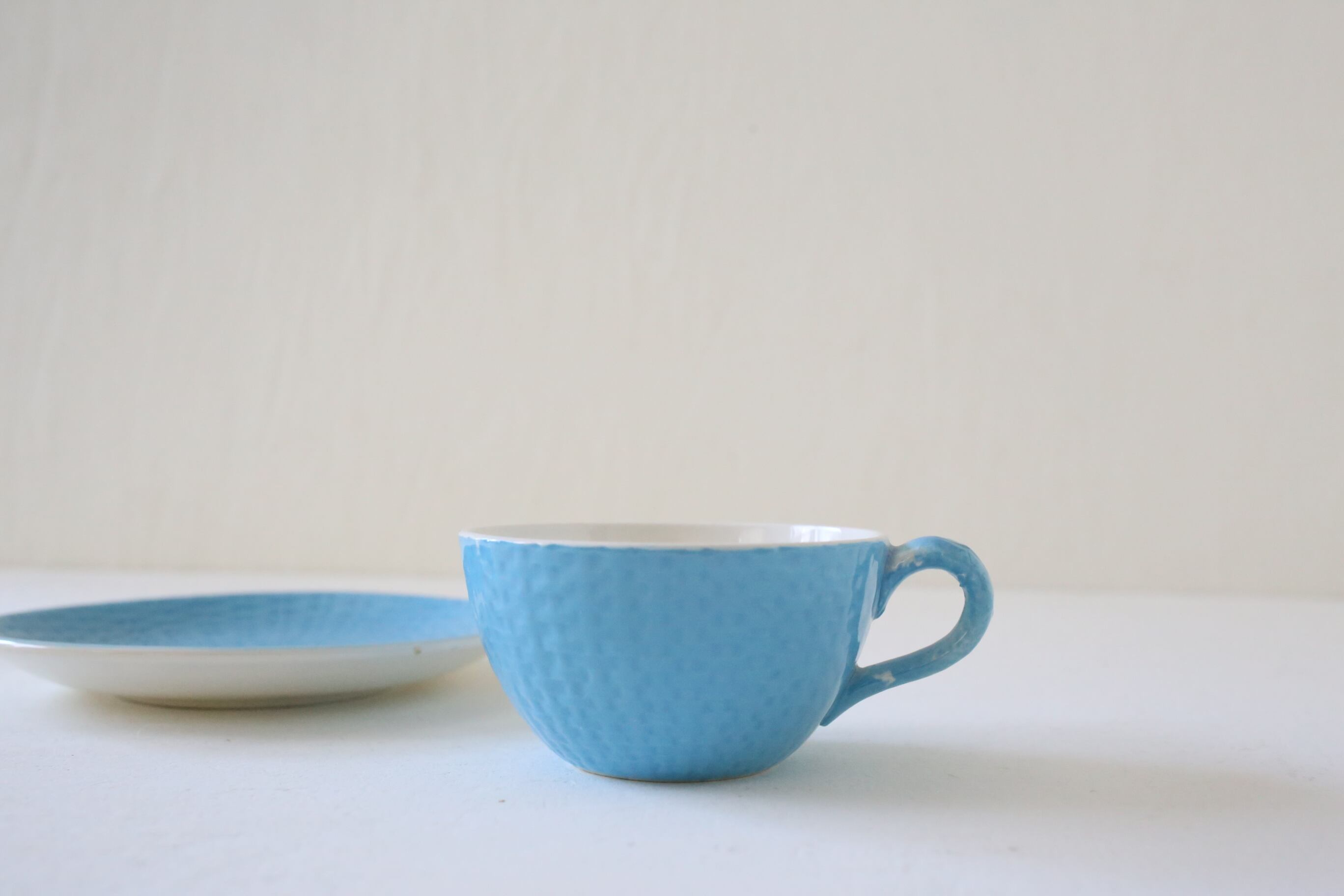 ソーサーに貫入がめだちますが、それ以外は微細なキズや製造時のムラ程度で、全体的には目立つダメージもなくとても良い状態です。