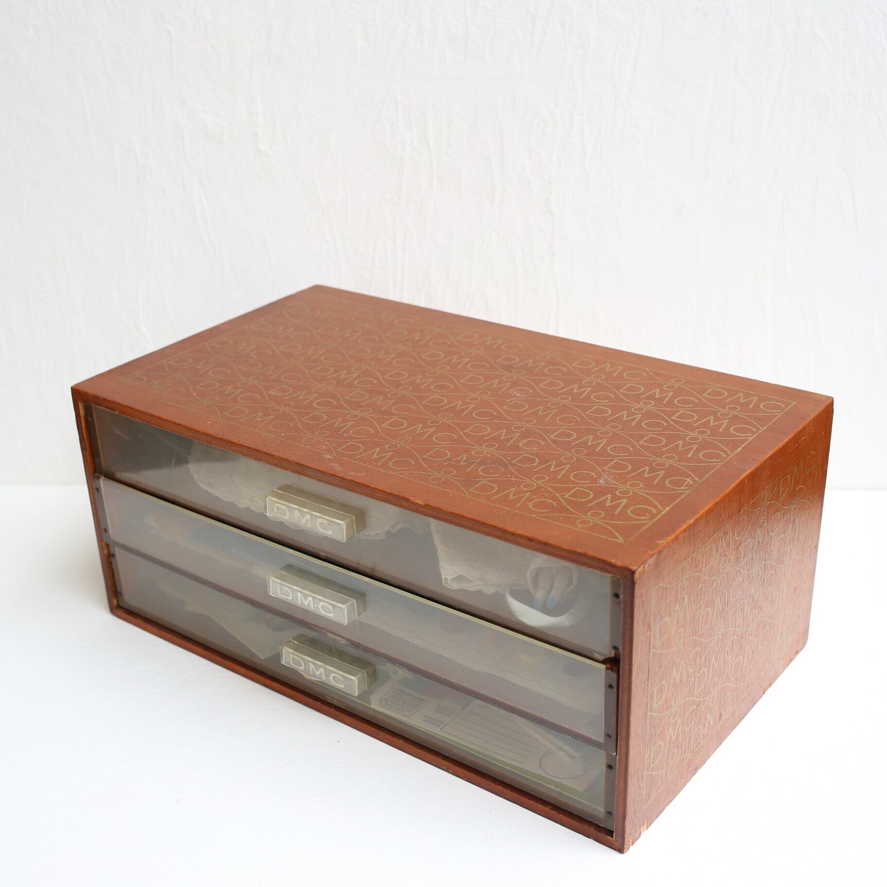 フランス アンティーク ヴィンテージ DMC 手芸用品店(メルスリー) 木製3段キャビネット N-03838