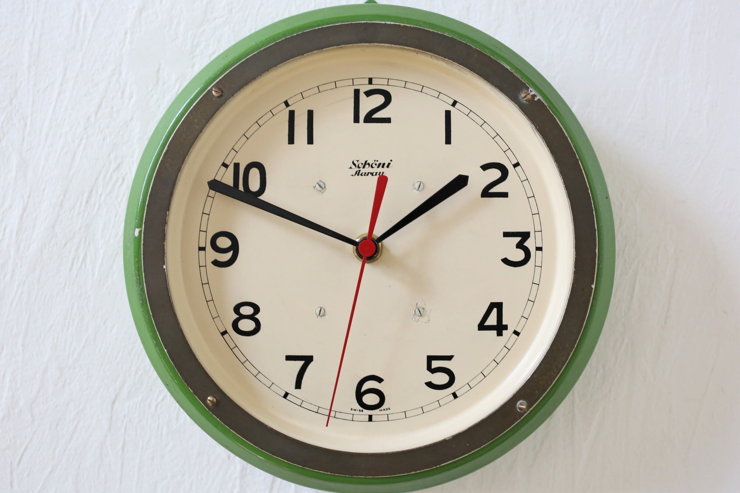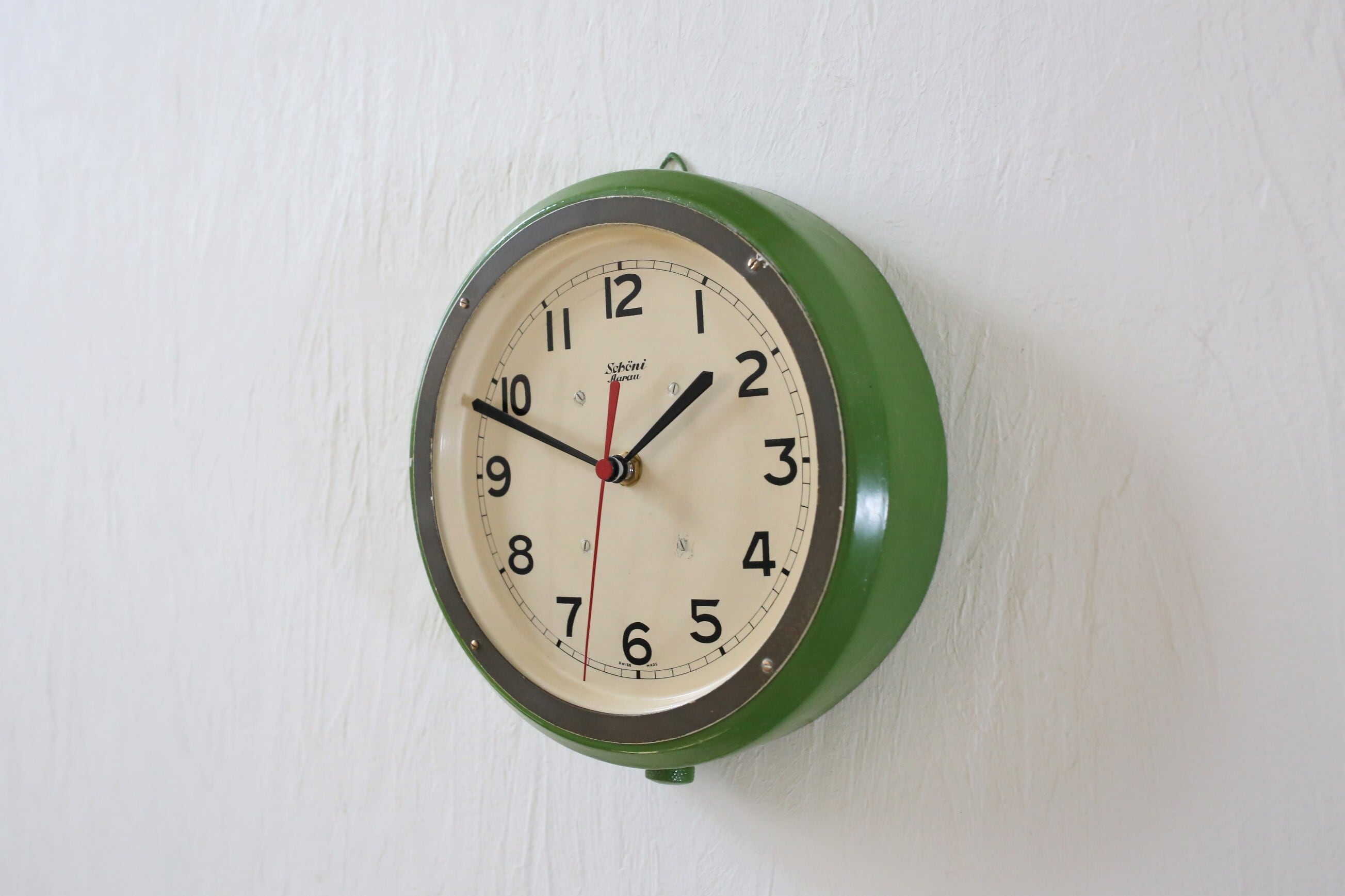 スイス製 アンティーク ヴィンテージ 小さめの壁掛け時計 『Schöni』(電池式クォーツ交換済、リペイント)N-03951