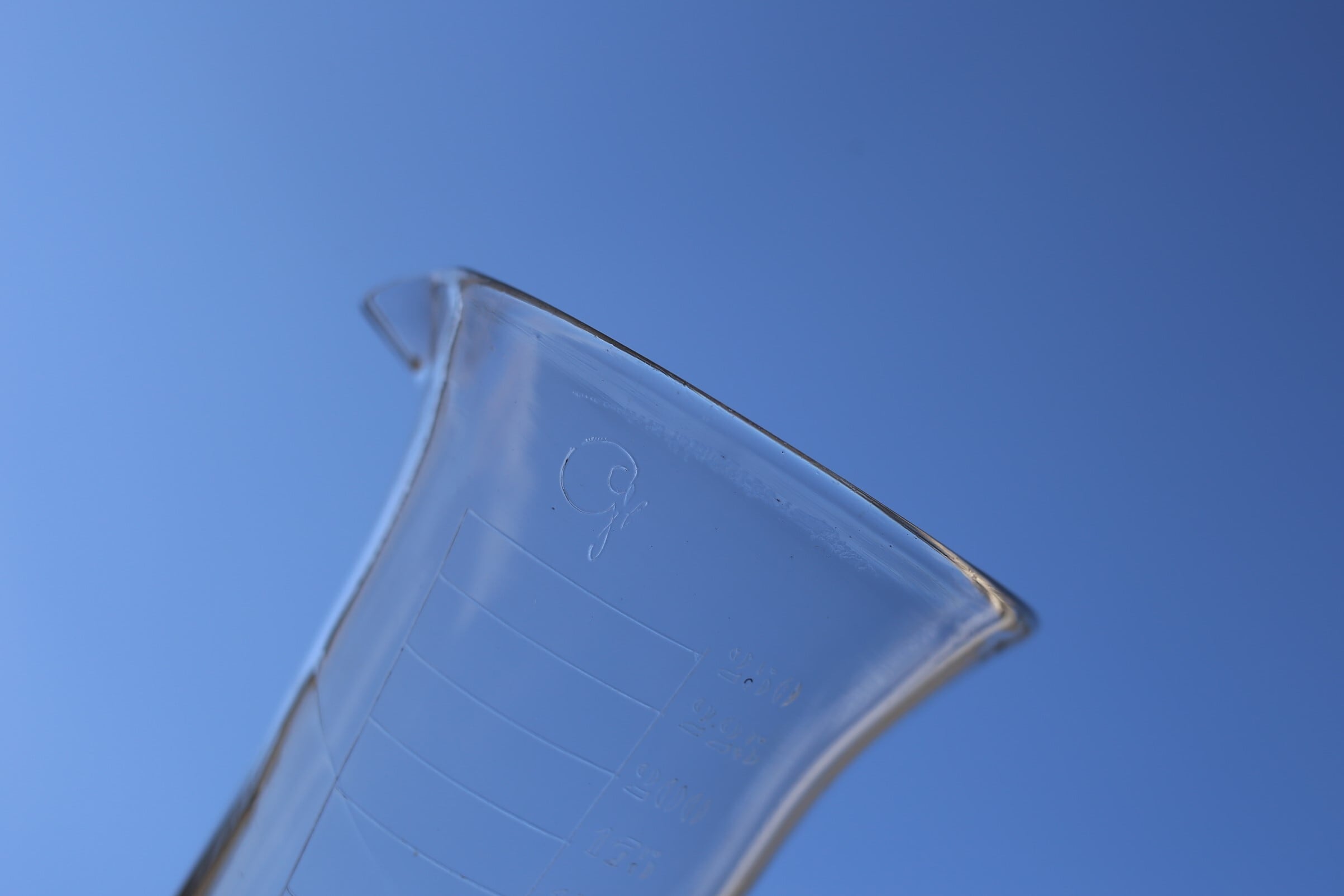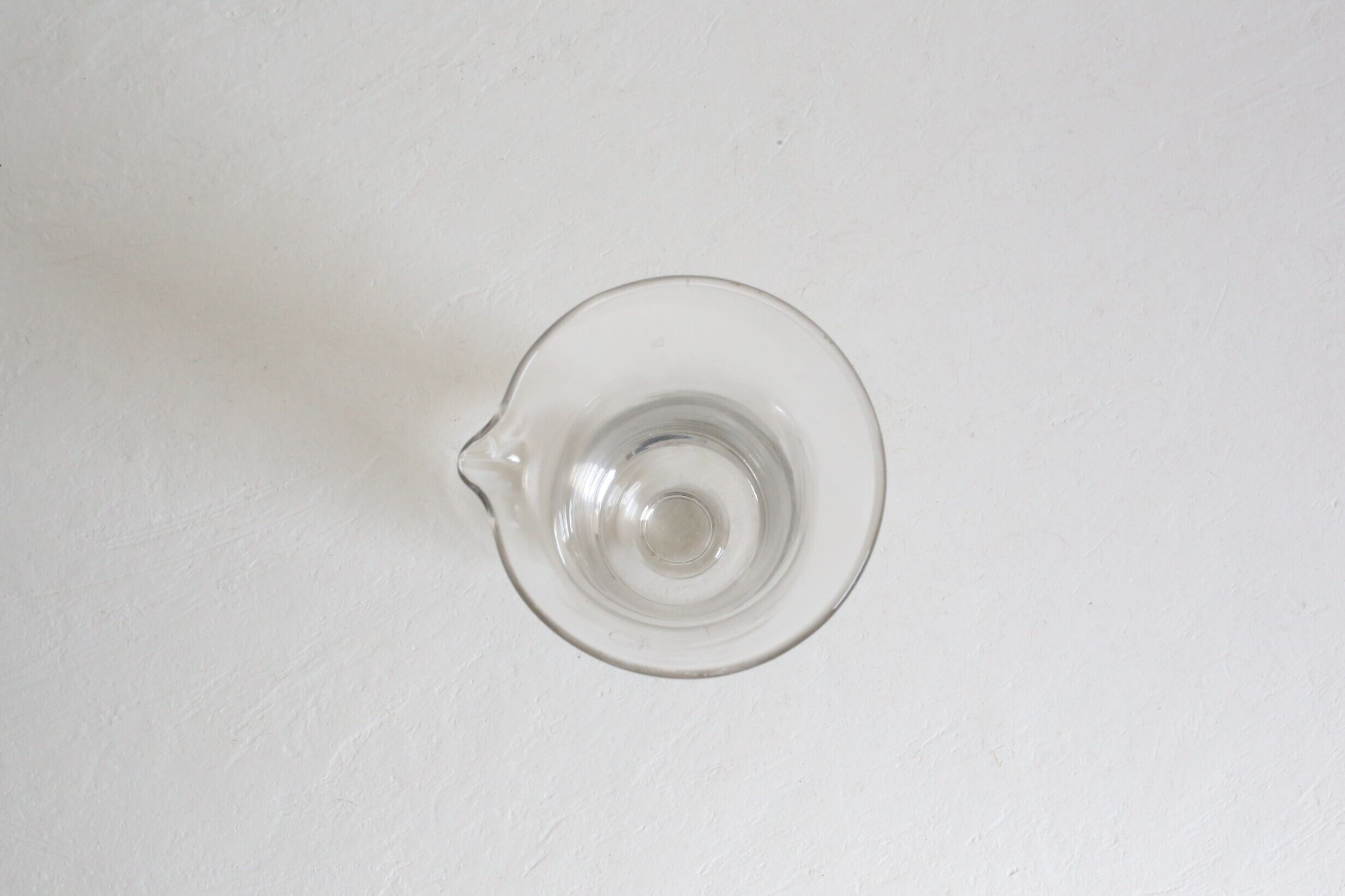 フランス アンティーク ヴィンテージ ガラス 脚付きメジャーカップ 計量グラス 口付き N-03993