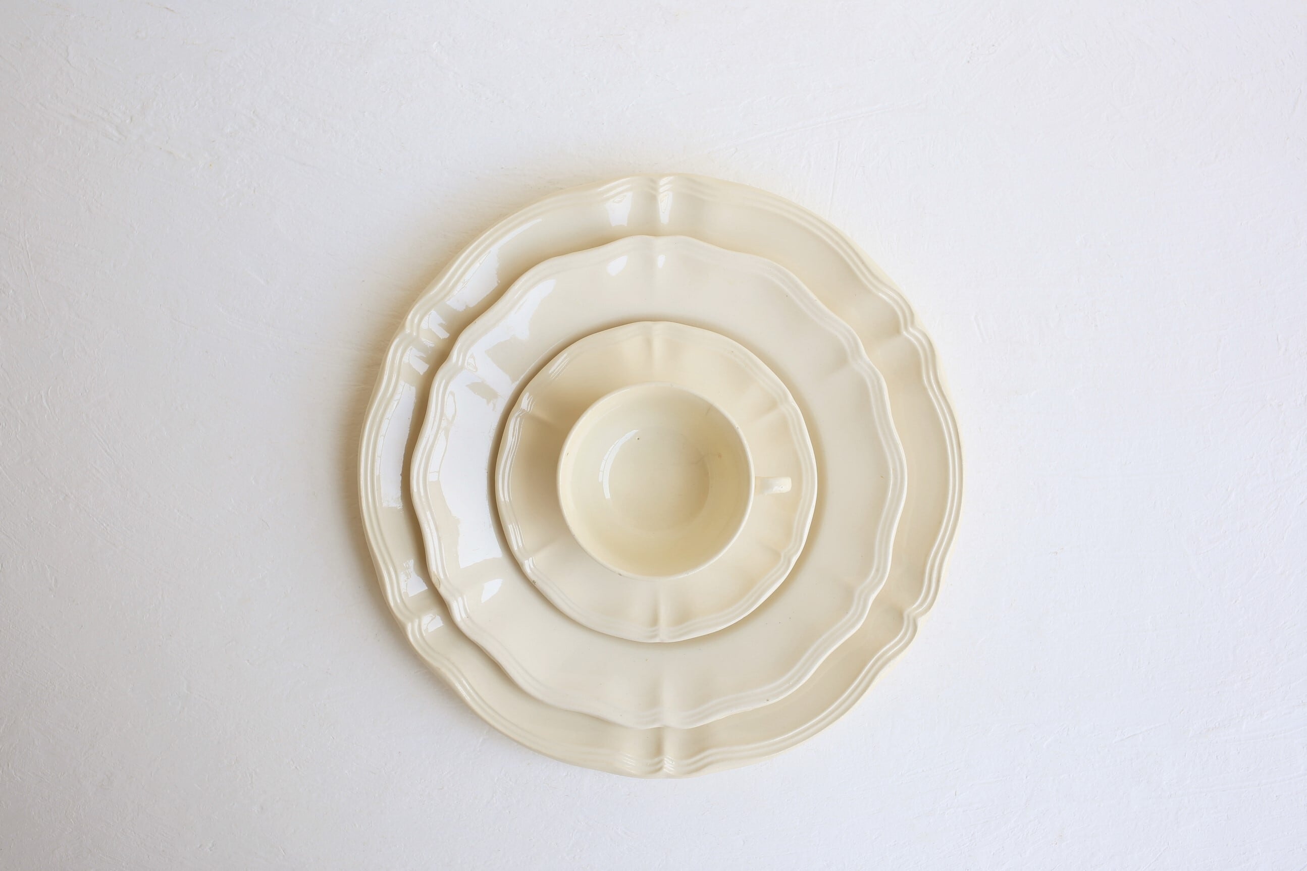 フランス ディゴワンサルグミンヌの花リム皿は丸みがあり優しく波打ったデザインがとても印象的です。