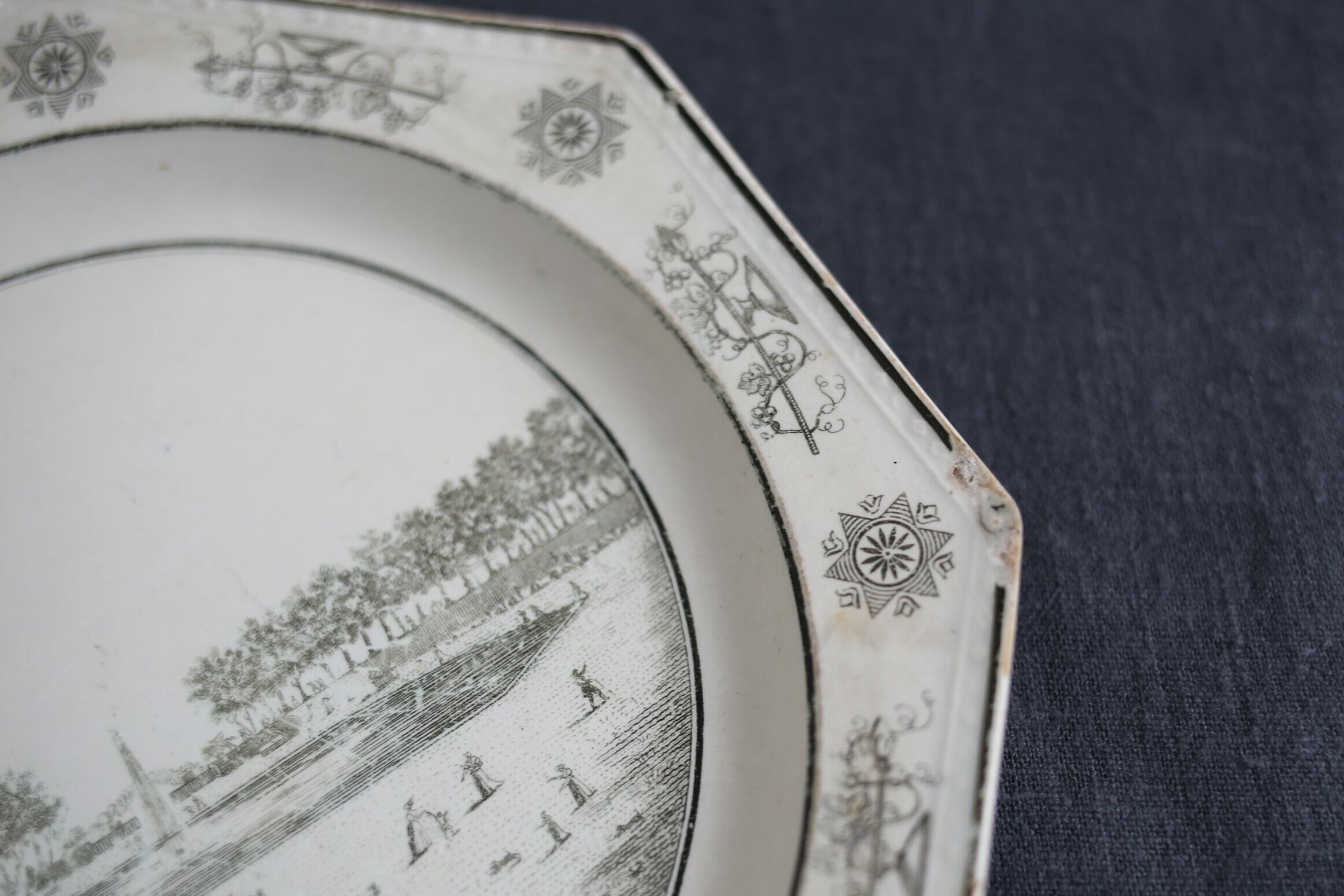 フランス アンティーク Creil クレイユ オクトゴナル 絵皿(チュイルリー公園) N-02712-1