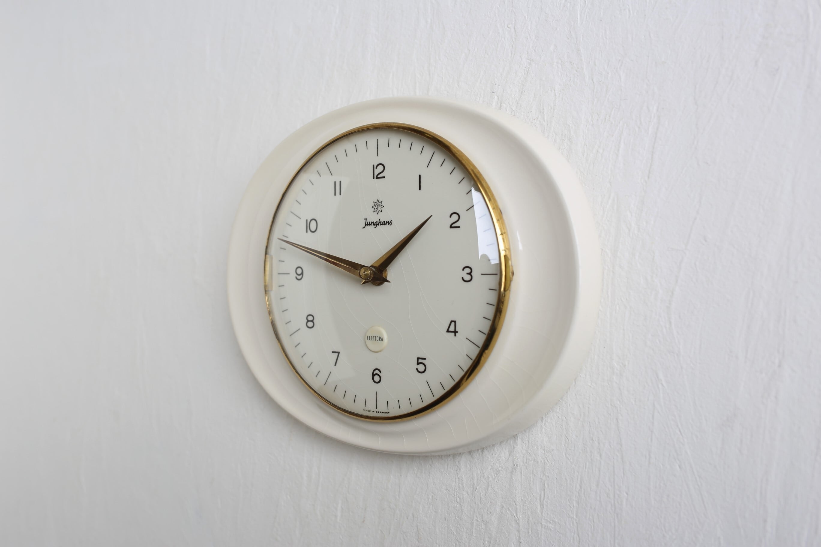ドイツ アンティーク ヴィンテージ Junghans ユンハンス 陶器 掛時計 オーバル型(電池式クォーツ交換済)N-03949