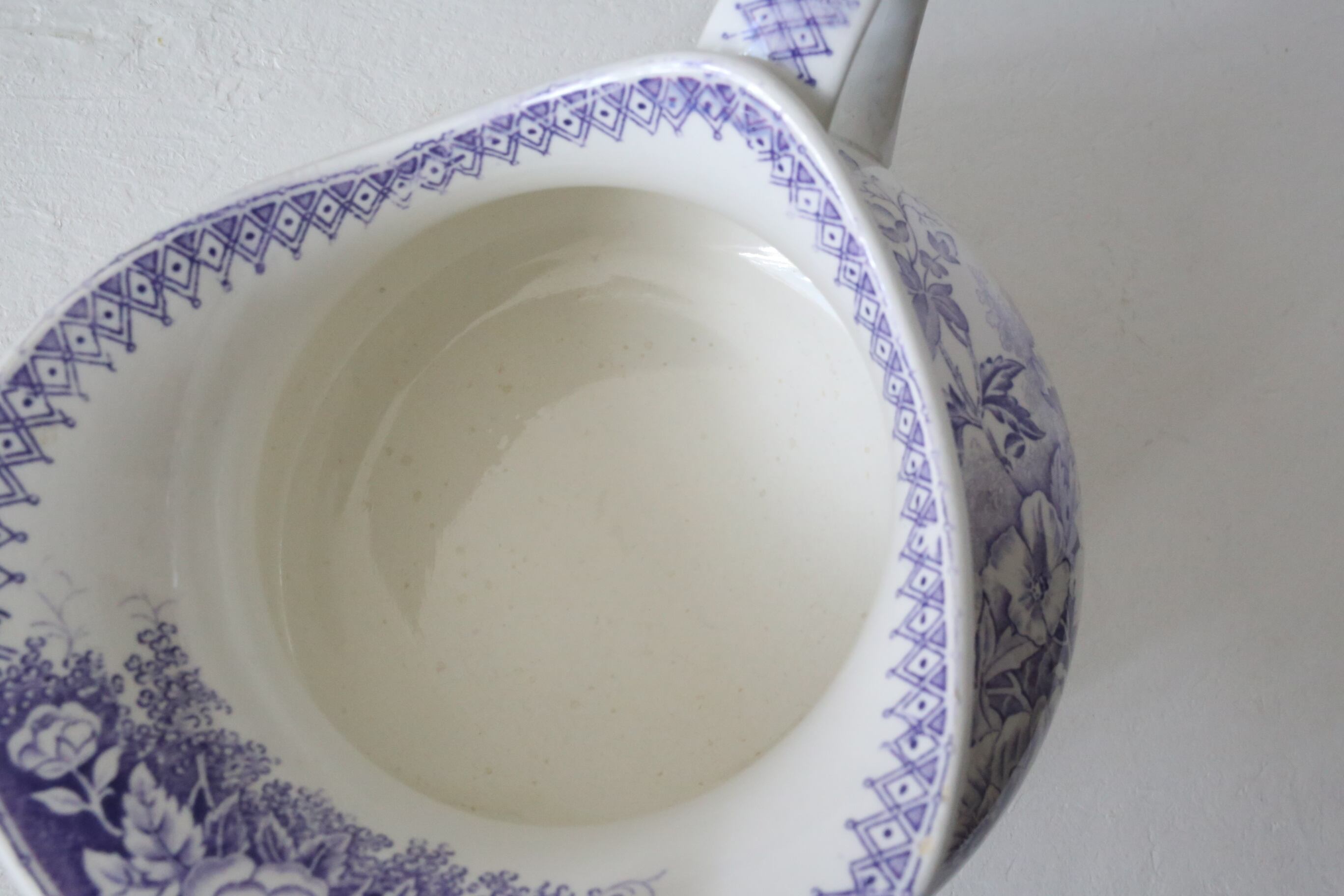 フランス アンティーク U&C SARREGUEMINES 滑らかな曲線のピシェ『JARDINIERE』パープル N-04098