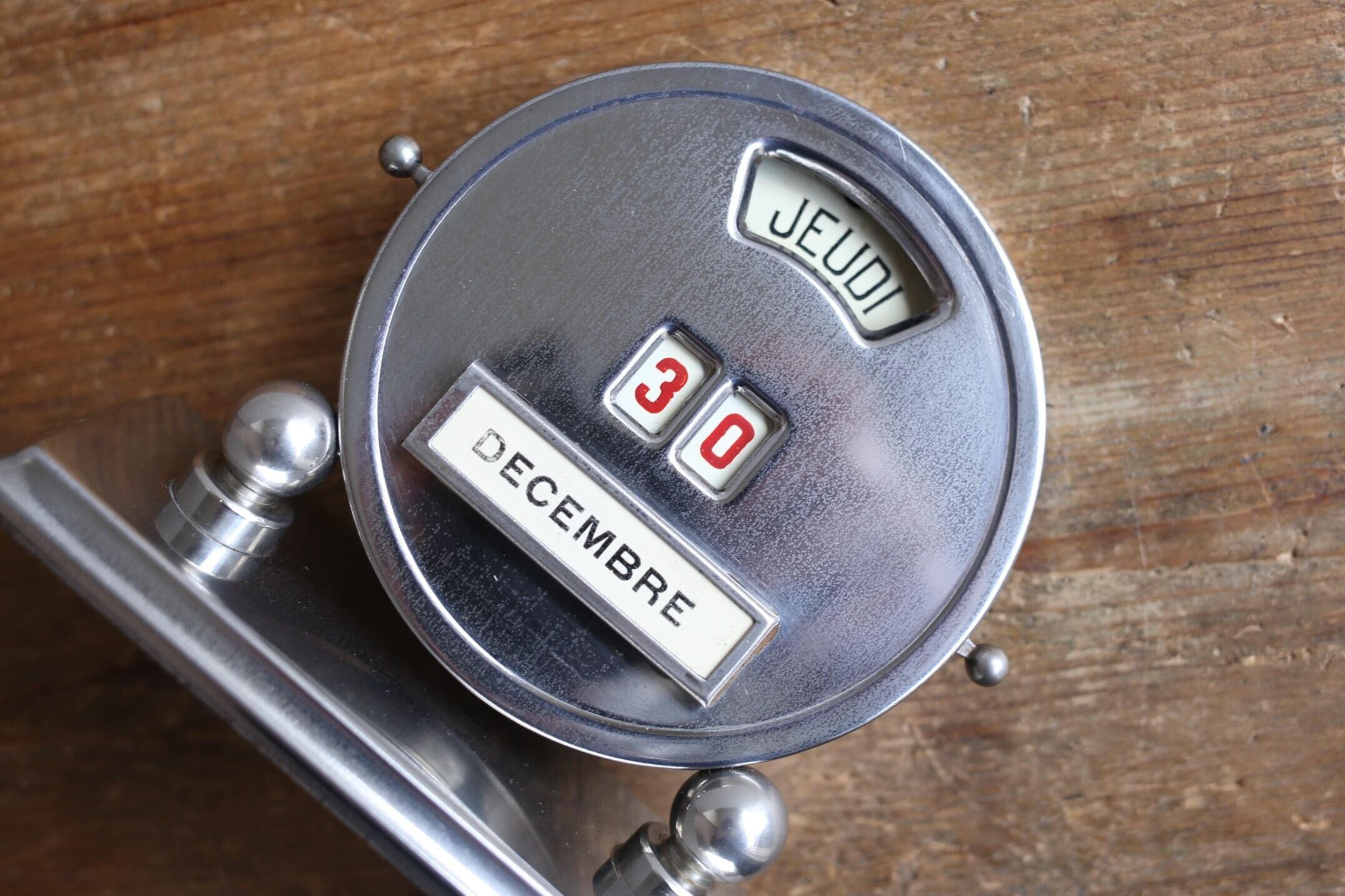 フランス アンティーク ヴィンテージ MISTRAL 万年卓上カレンダー シルバー クローム N-04014