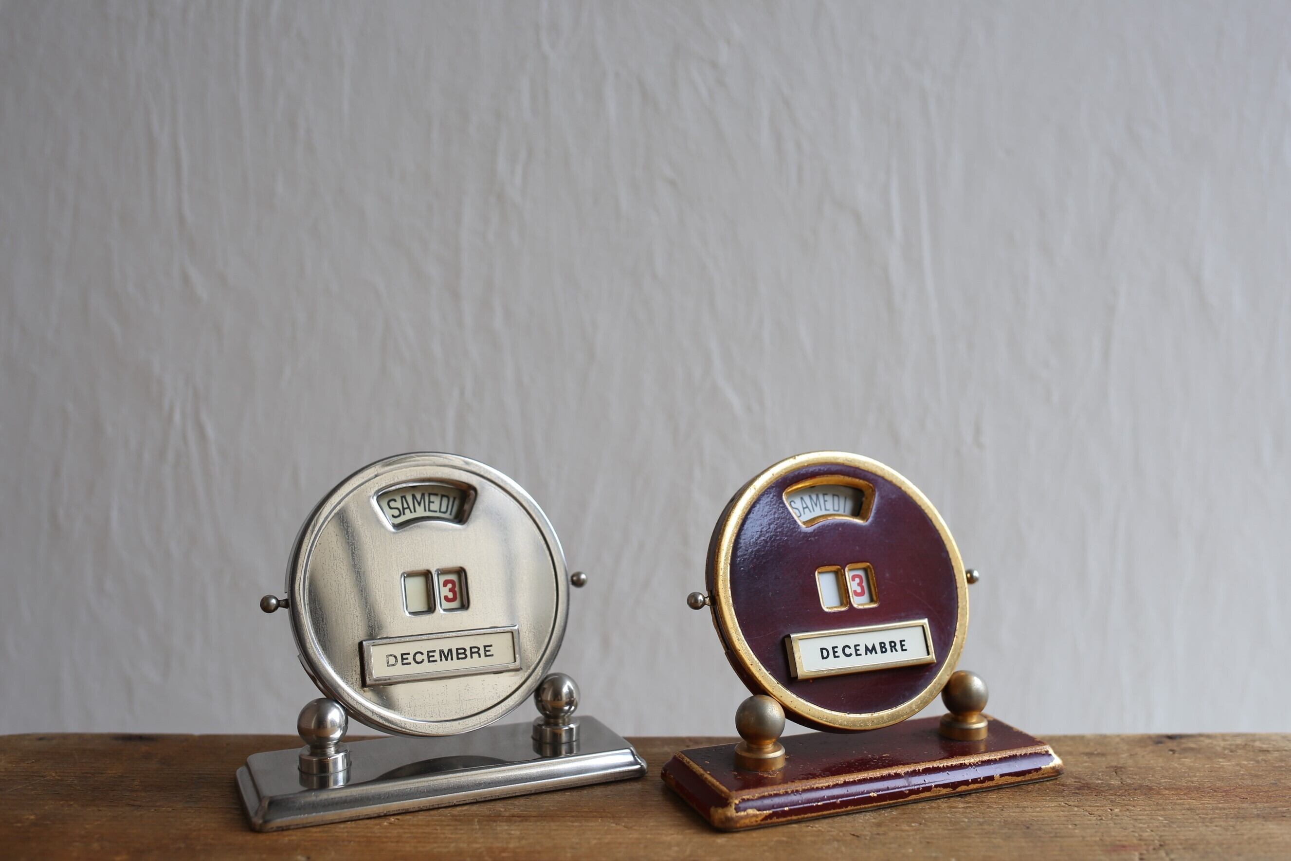 フランス アンティーク ヴィンテージ MISTRAL 万年卓上カレンダー ボルドー×ゴールド N-04008