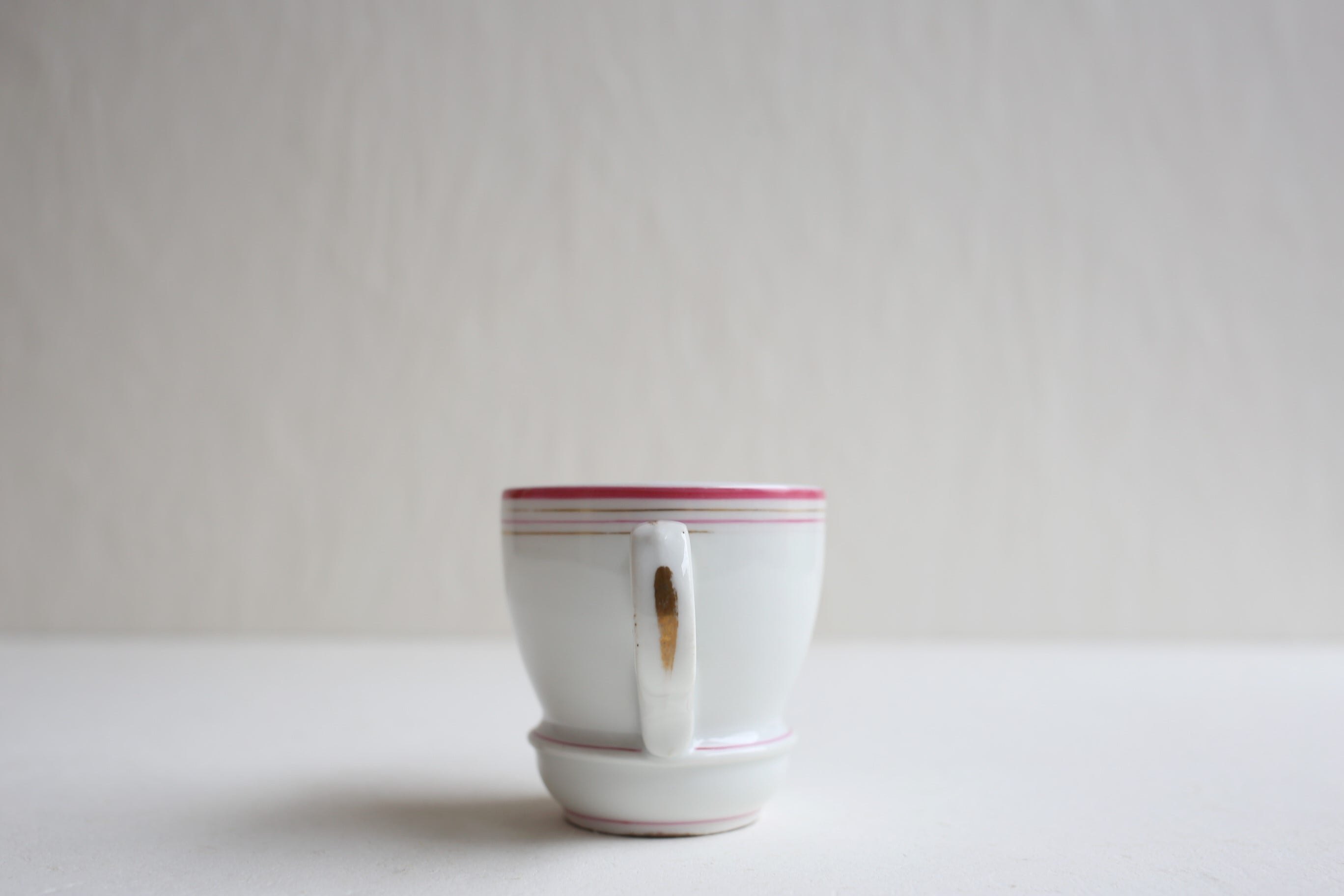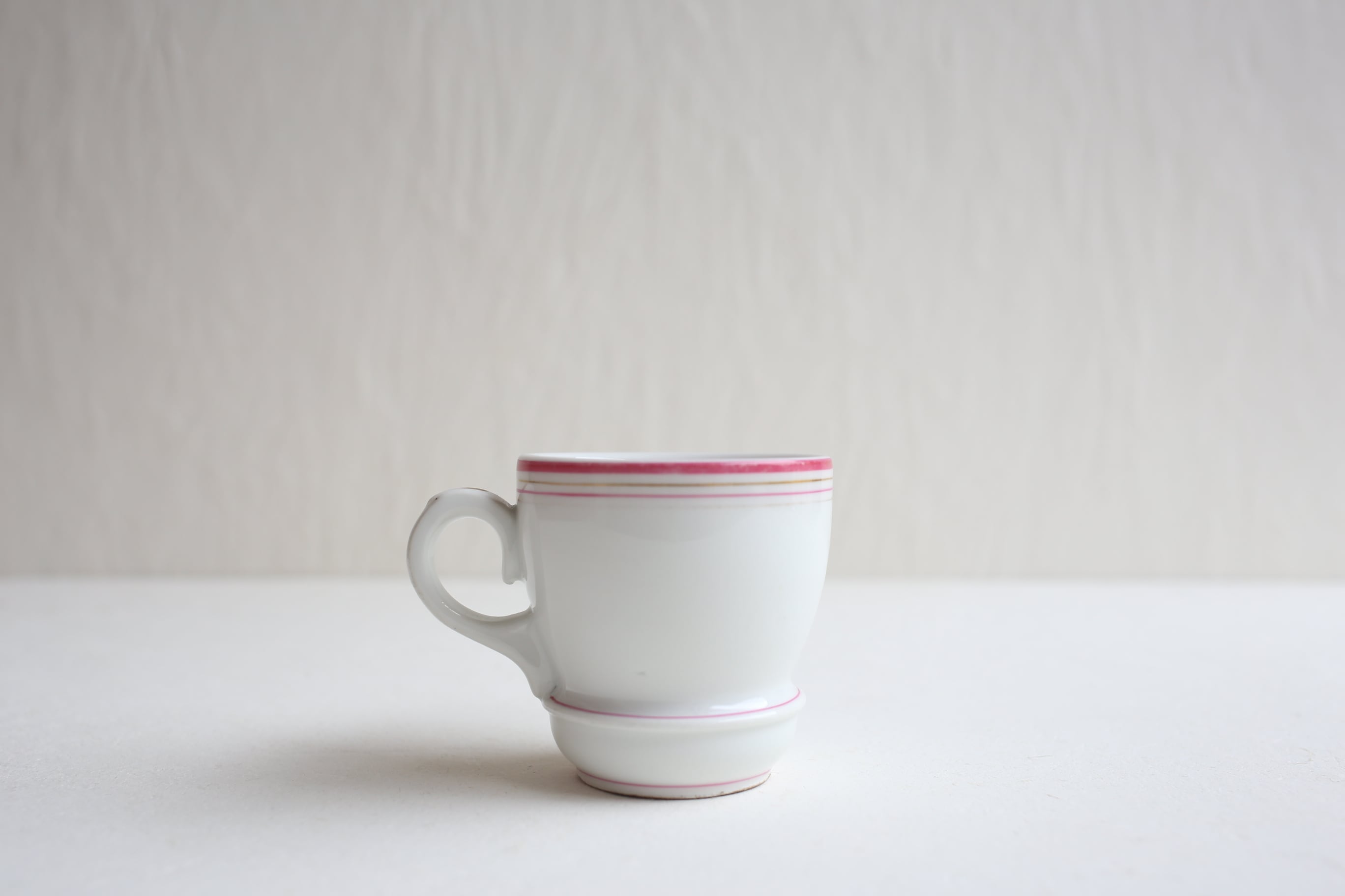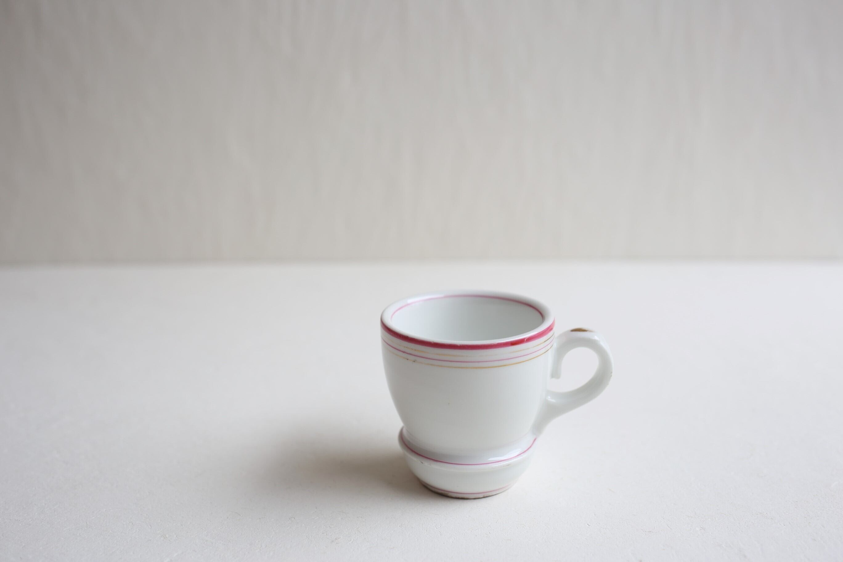 白地にピンクとゴールドのラインが入った小ぶりのブリュロカップです。