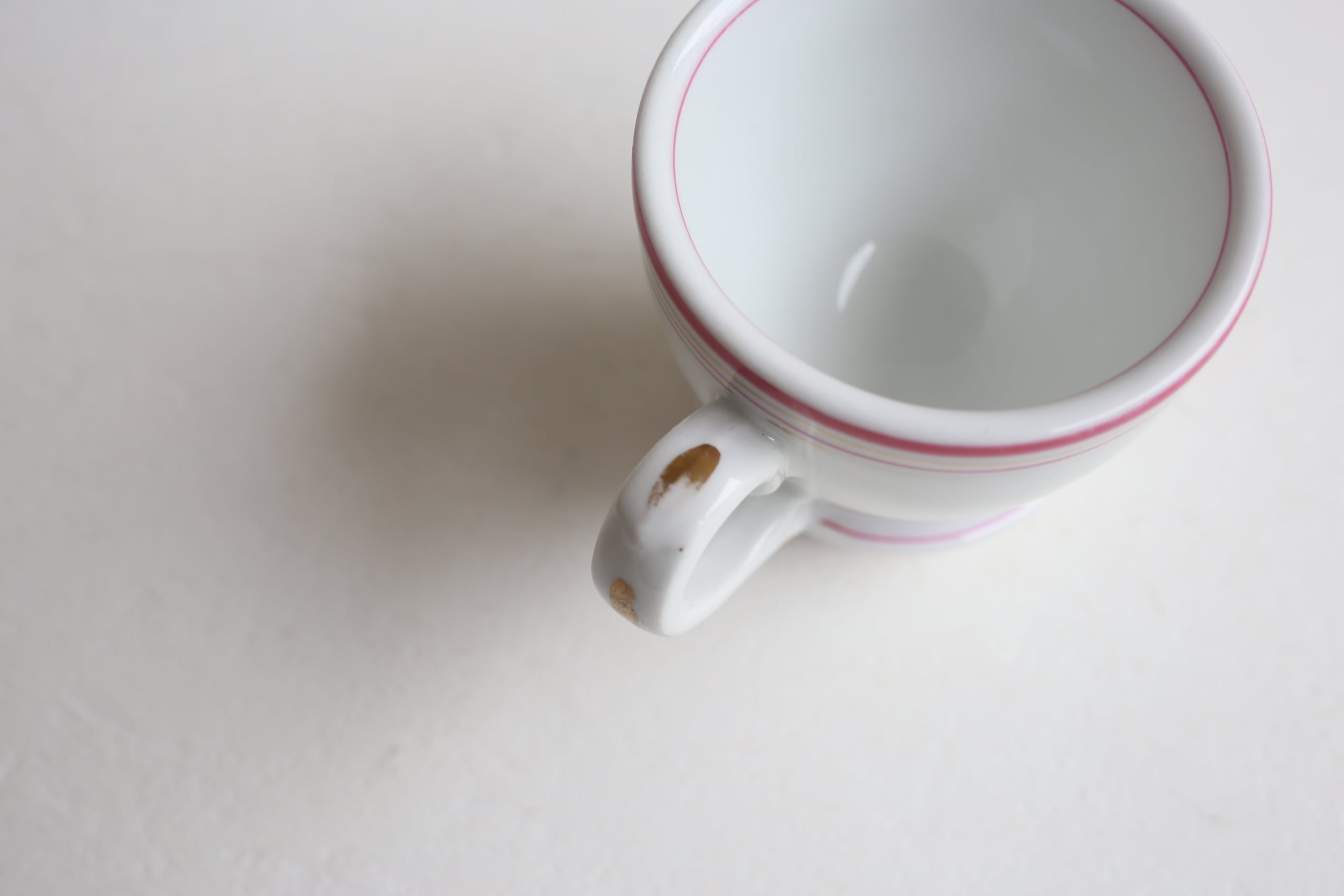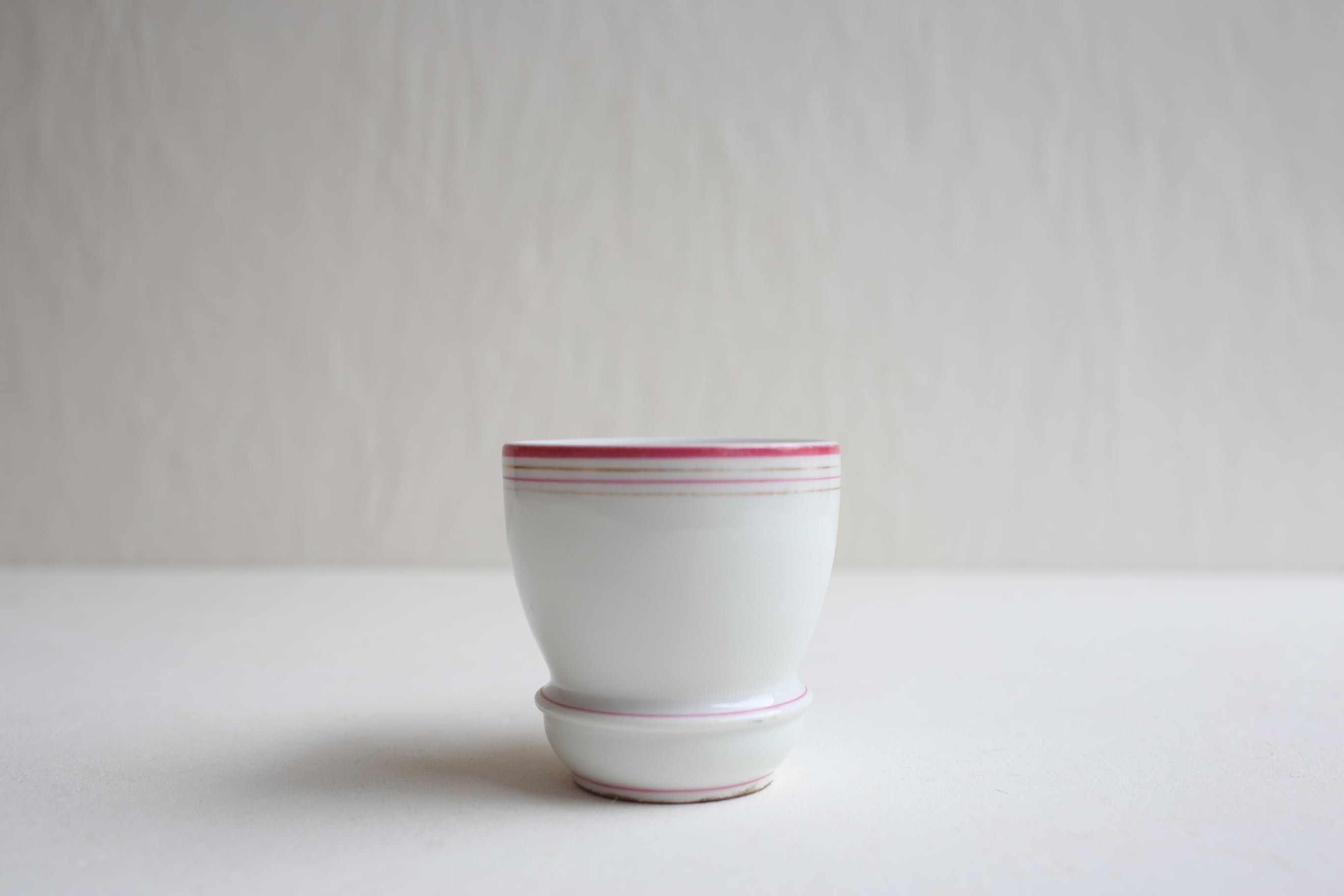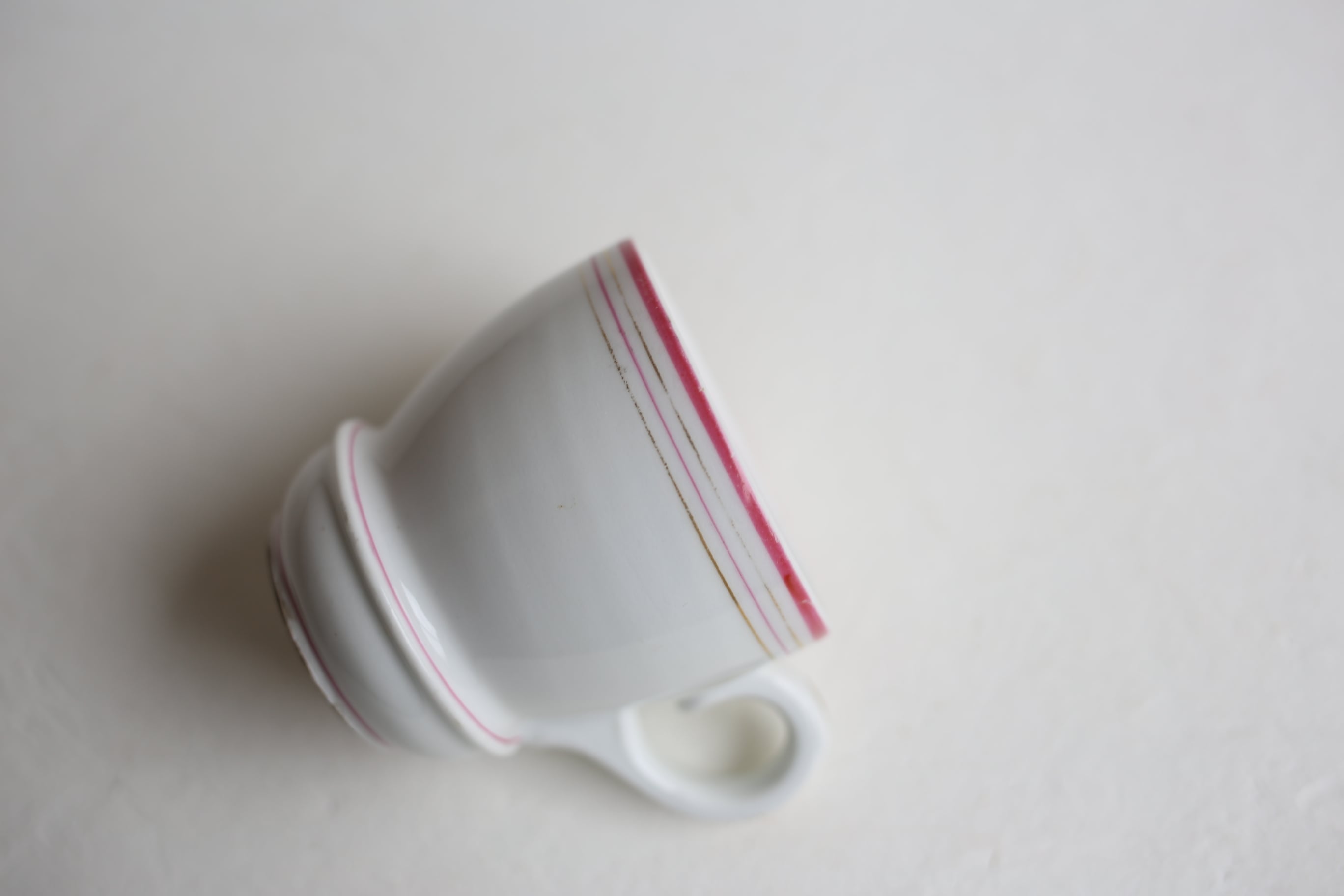 白地にピンクとゴールドのラインが入った小ぶりのブリュロカップです。