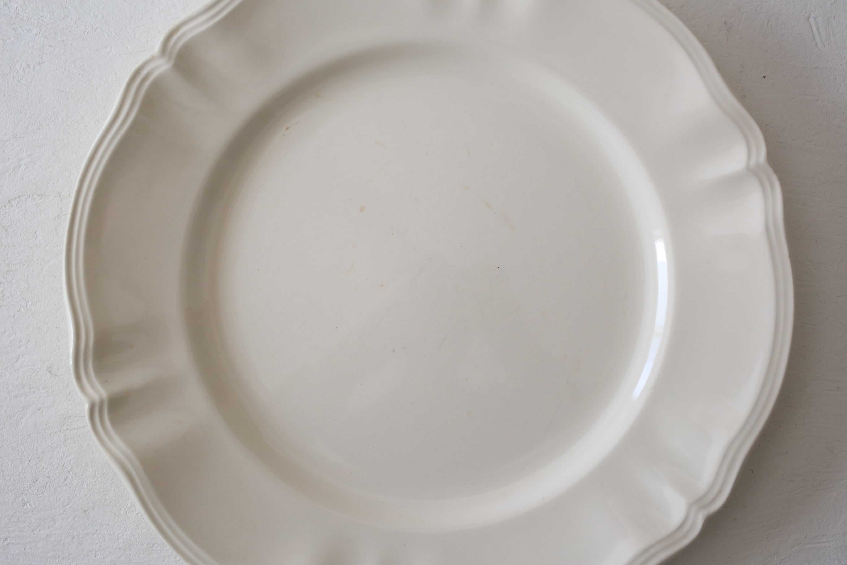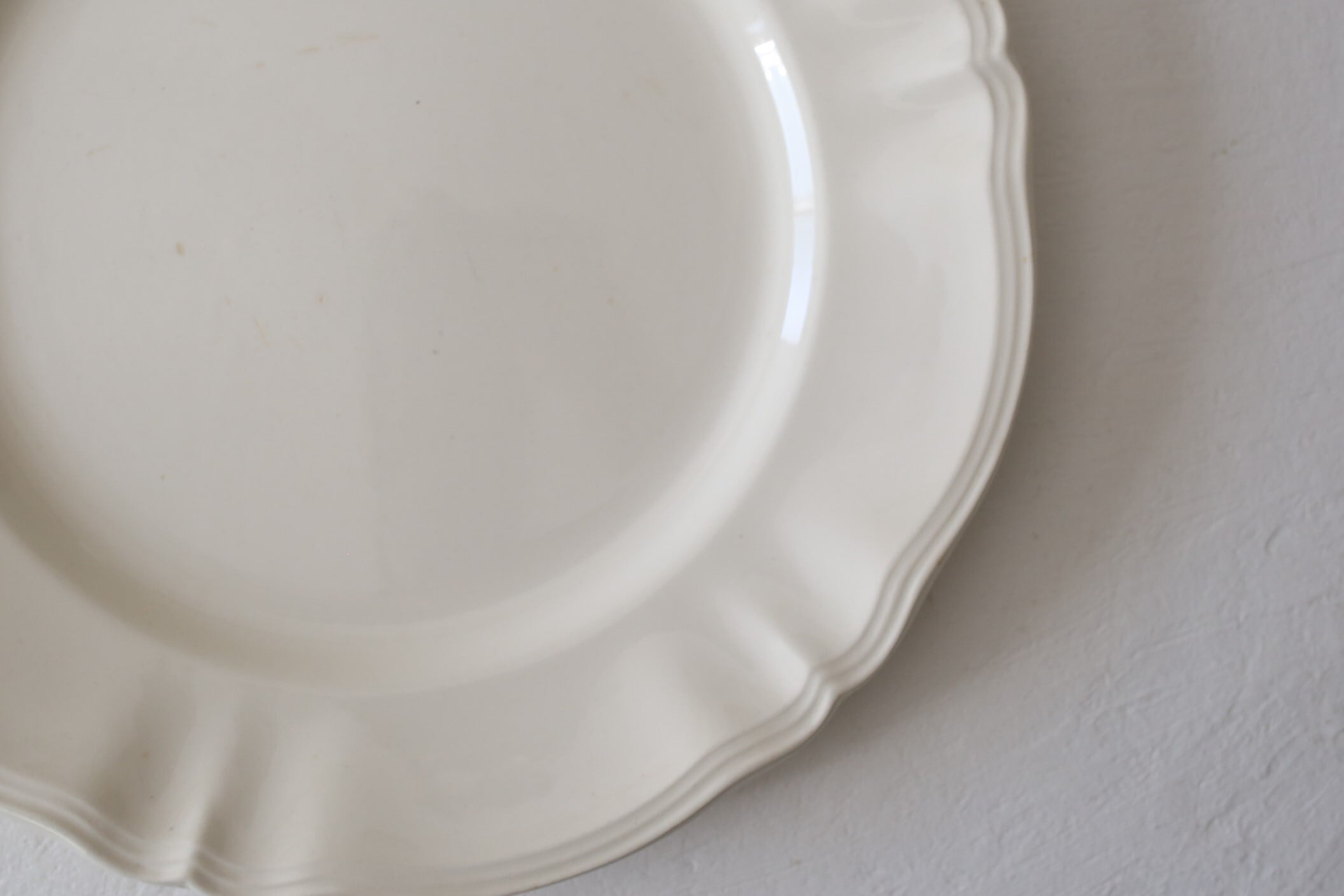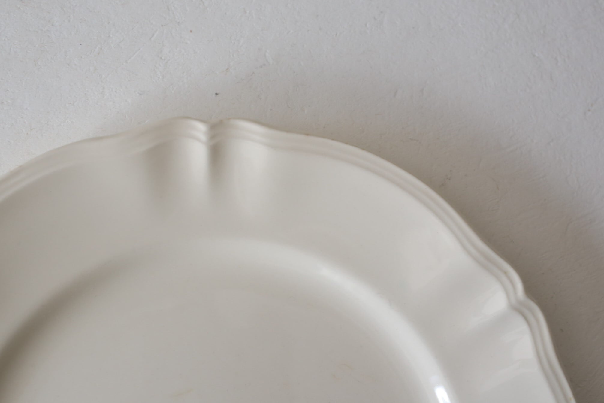 クリーム色の陶器に優しく波打ったデザインが人気のシリーズですが、何とでも合わせやすく飽きのこない素敵なプレートです。