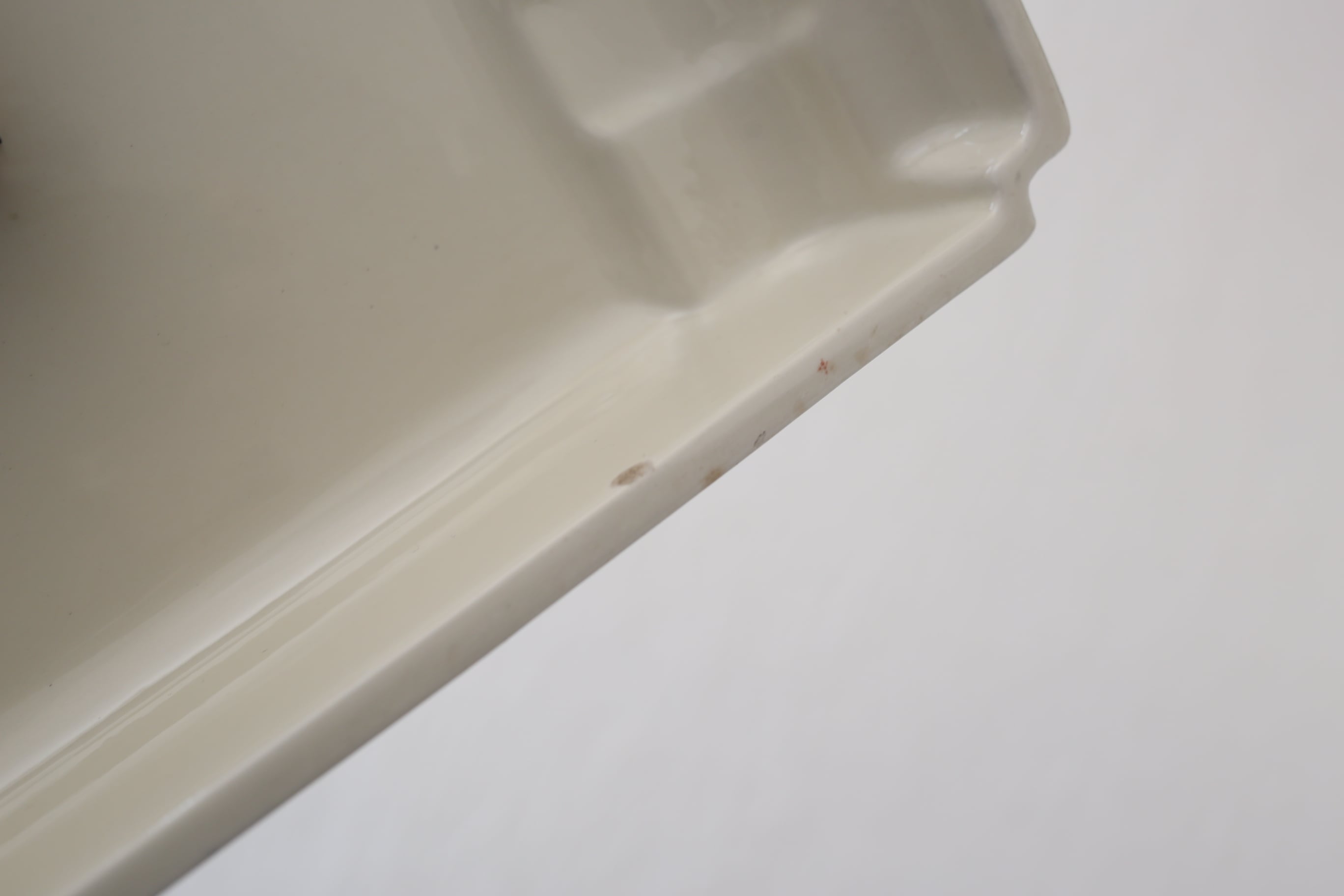 その他に微細なキズやスレ、シルバーの部分や針の色のクスミや薄れ、製造時のムラ等ありますが、全体的には陶器の釉薬の輝きあり良い状態です。