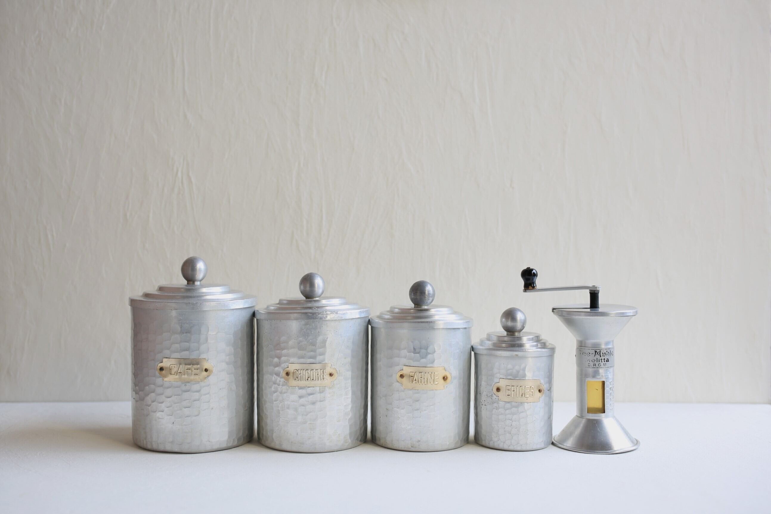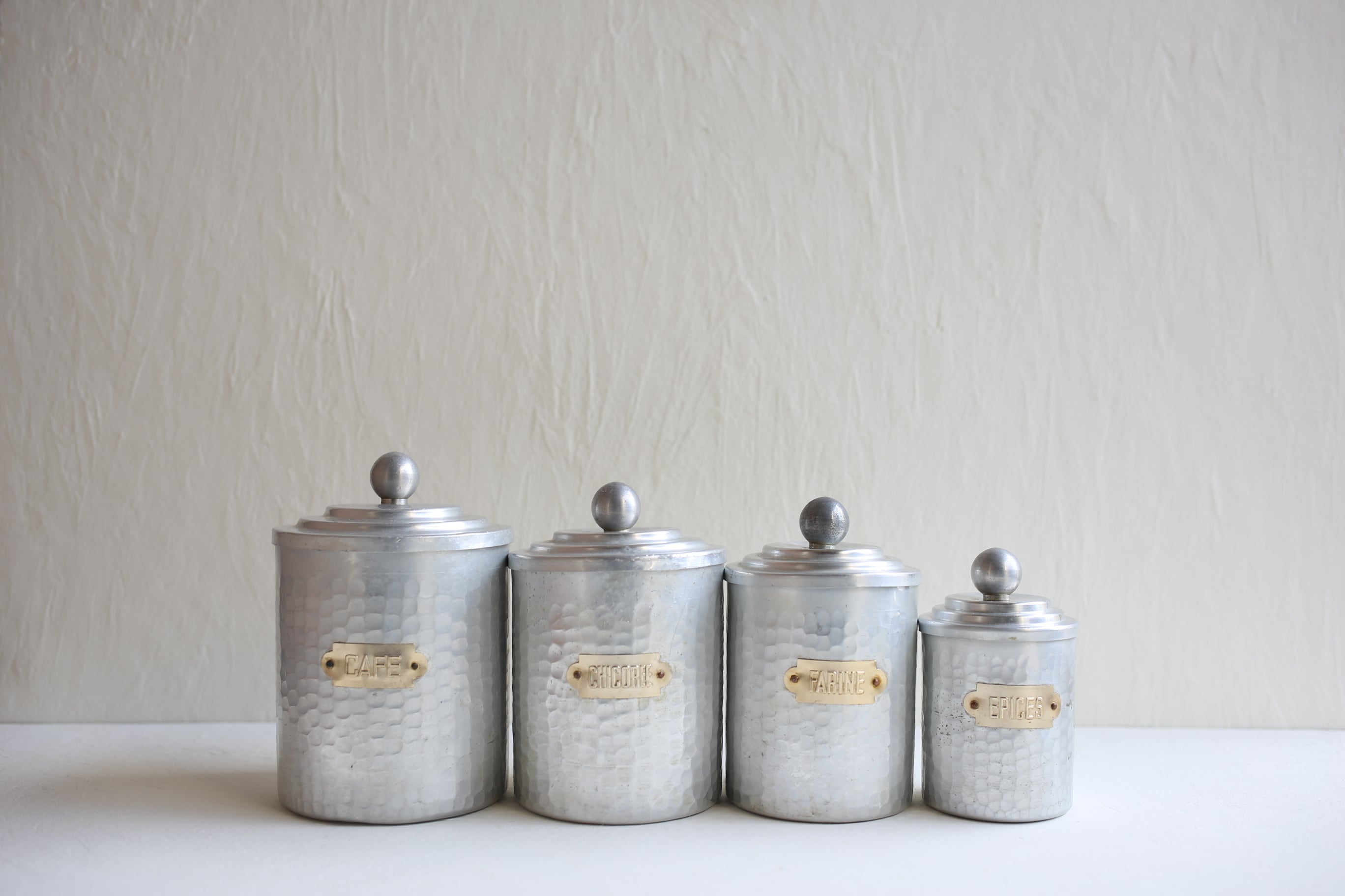 フランス アンティークのキッチン雑貨の定番であるアルミのキャニスターです。