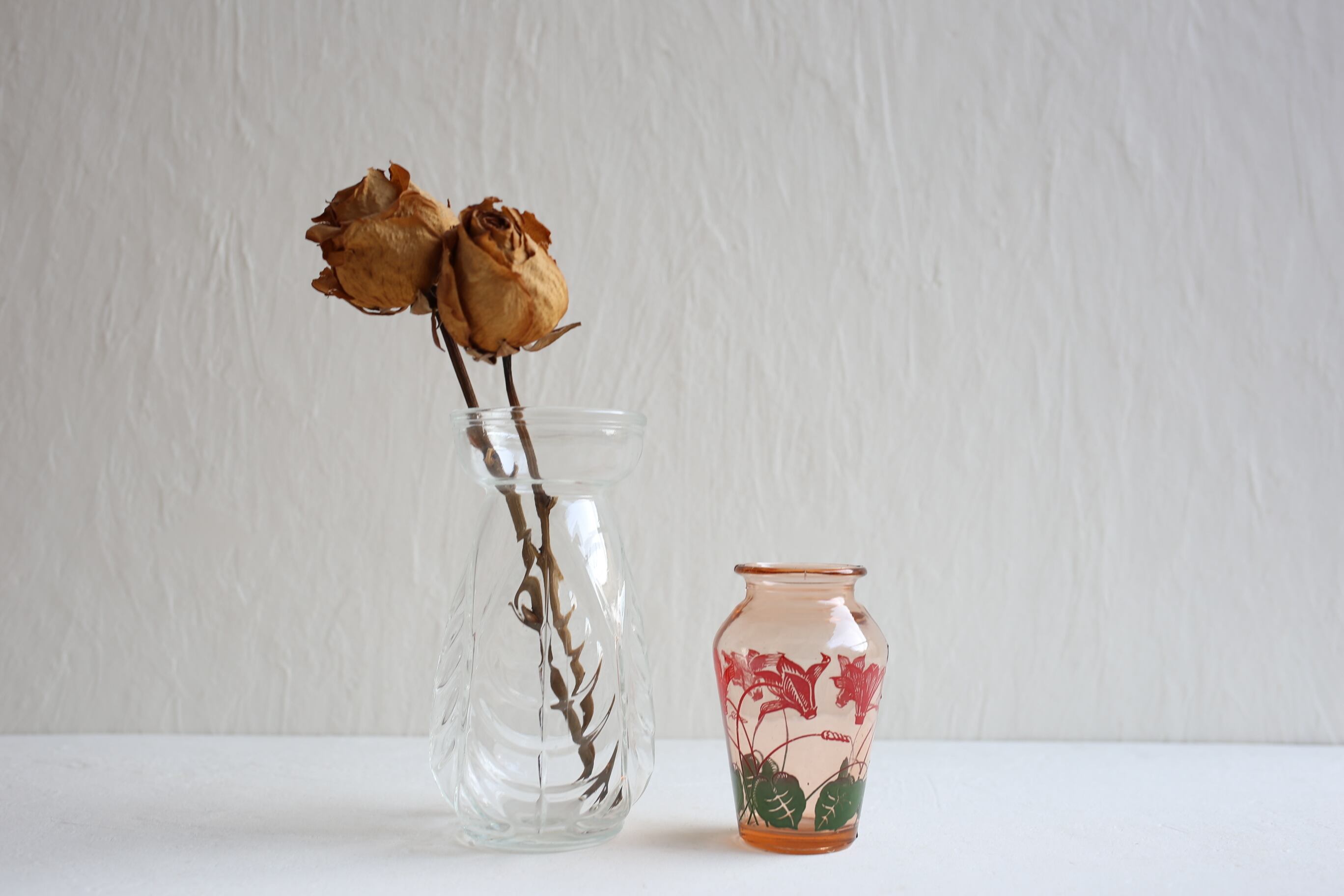 こちらは大きめのサイズで口の上部が広がるフォルムや古いガラス特有の揺れや気泡がとても良い雰囲気です。