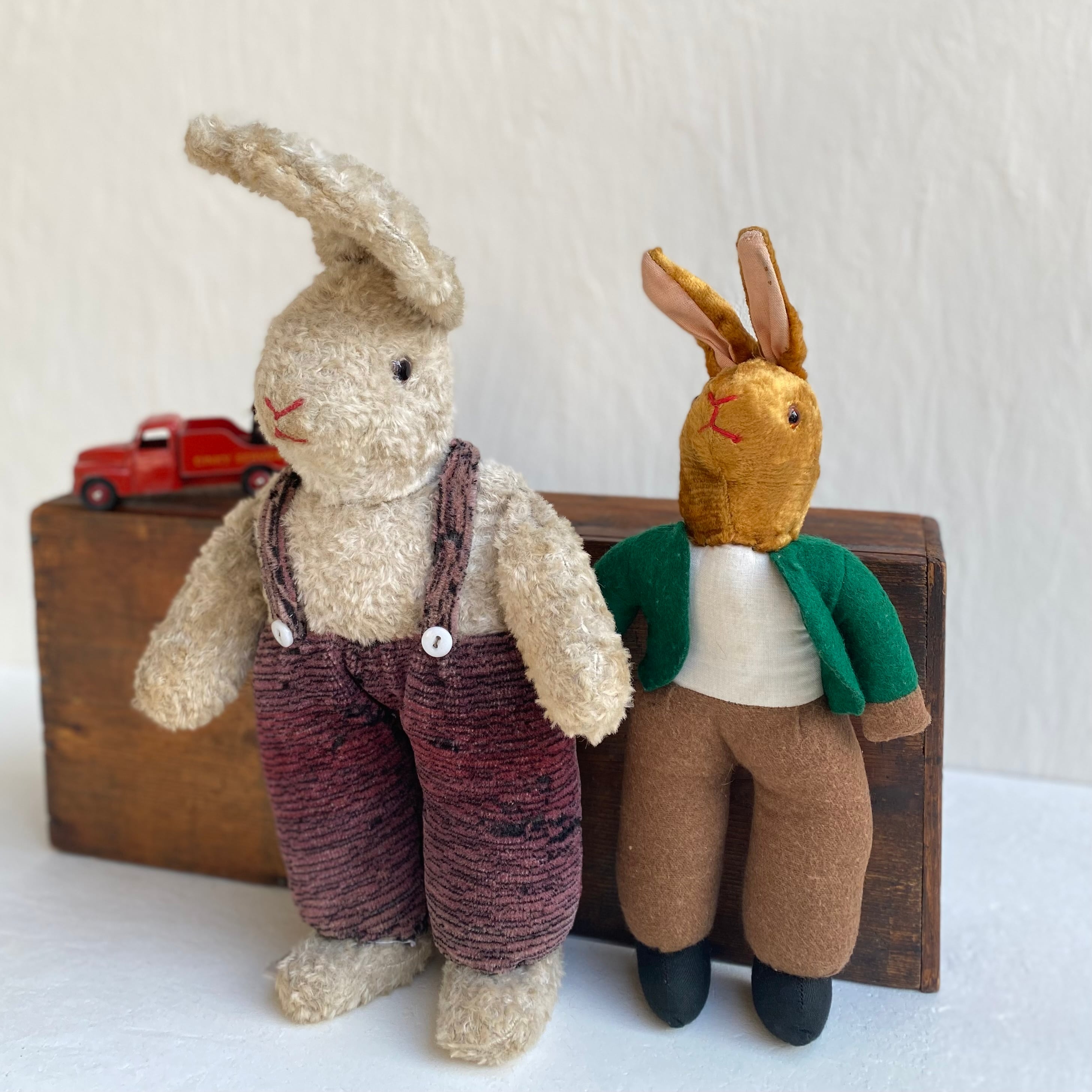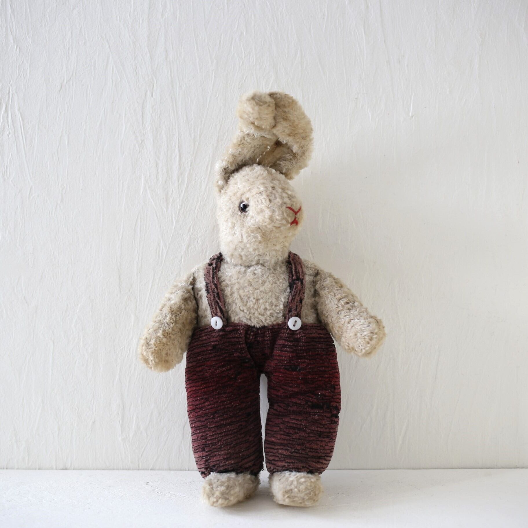 ドイツ アンティーク ヴィンテージ ぬいぐるみ サスペンダーパンツを履いたウサギ 約24㎝ N-02093
