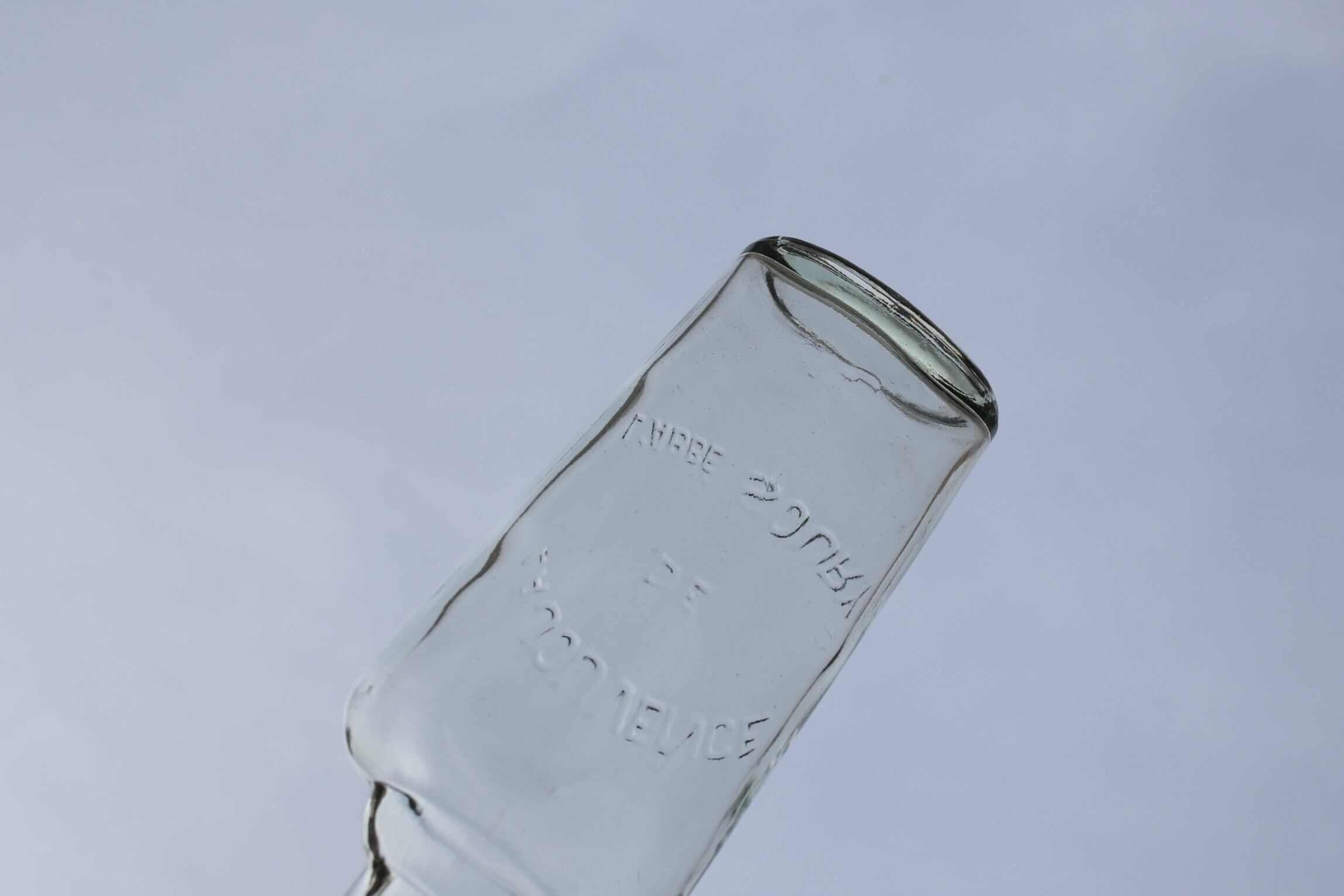 ややグリーンがかった気泡や揺らめきのあるガラスにエンボスの文字が入ったガラス瓶はとても美しく趣があります。