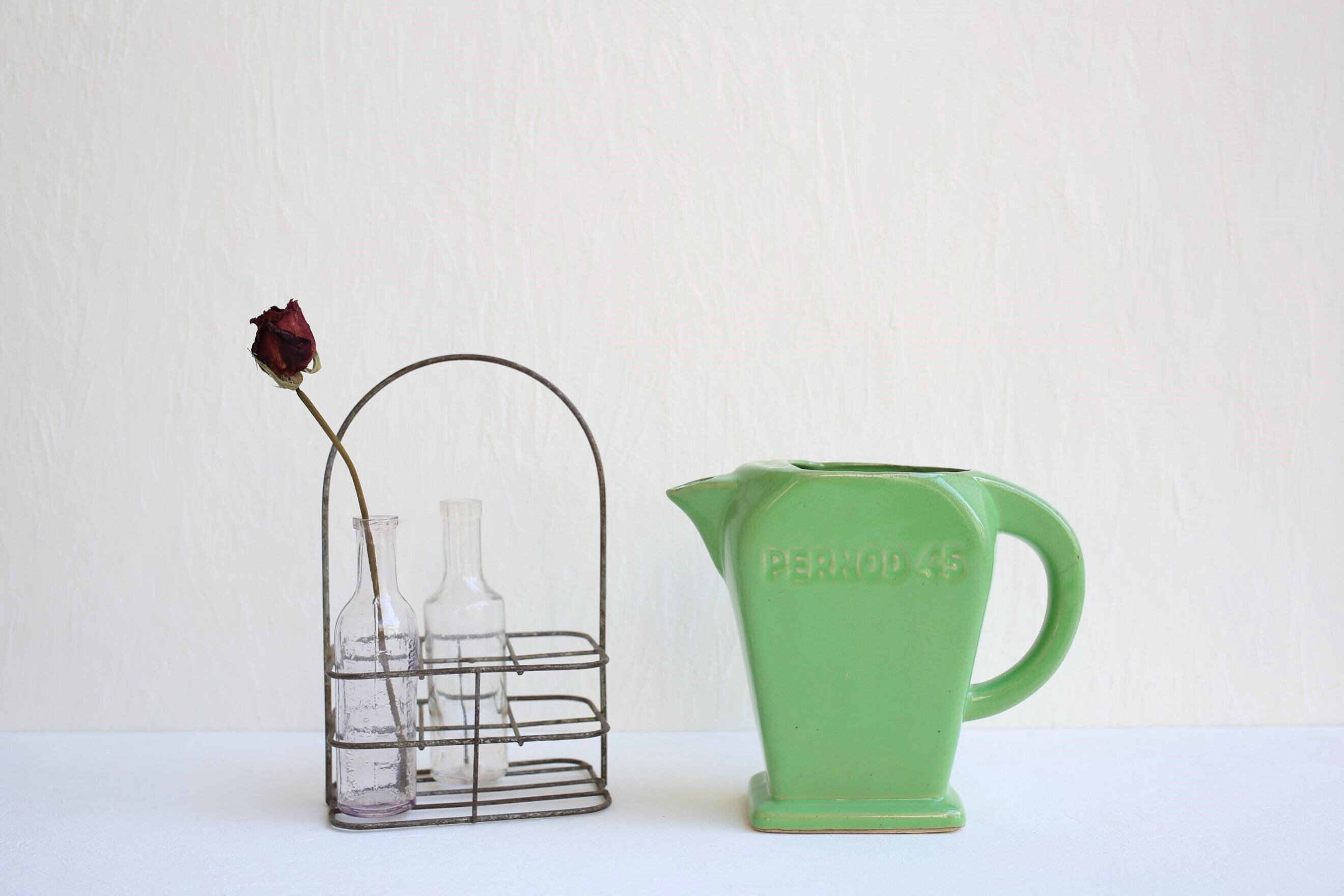 このPERNODのグリーンの陶器のピシェはなかなか出会うことのないレアなアイテムですが、キッチンやリビングのインテリアの良いアクセントになってくれそうです。