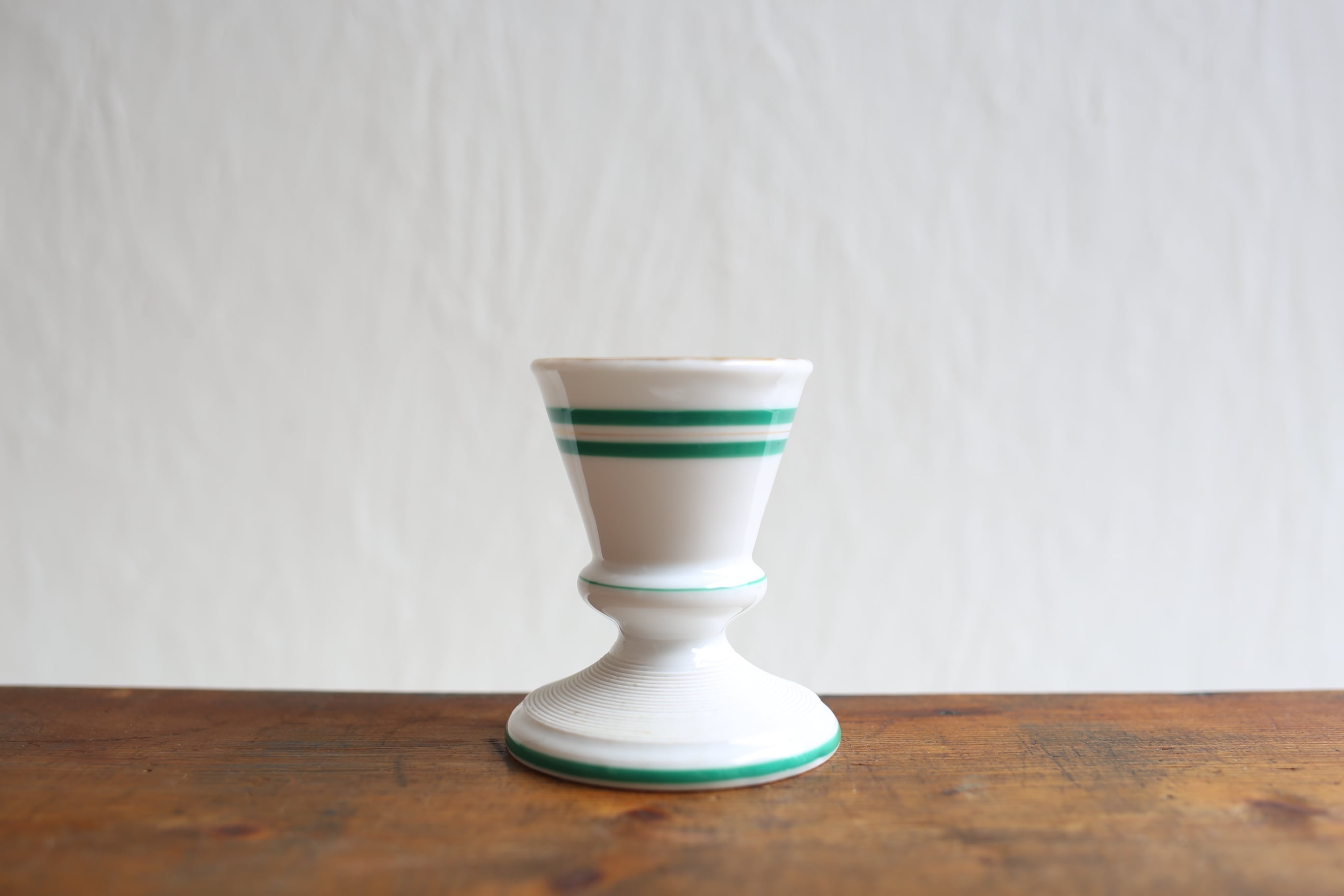 こちらは珍しい小ぶりのもので、シェープされたフォルムやグリーンとゴールドのボーダー柄が素敵です。