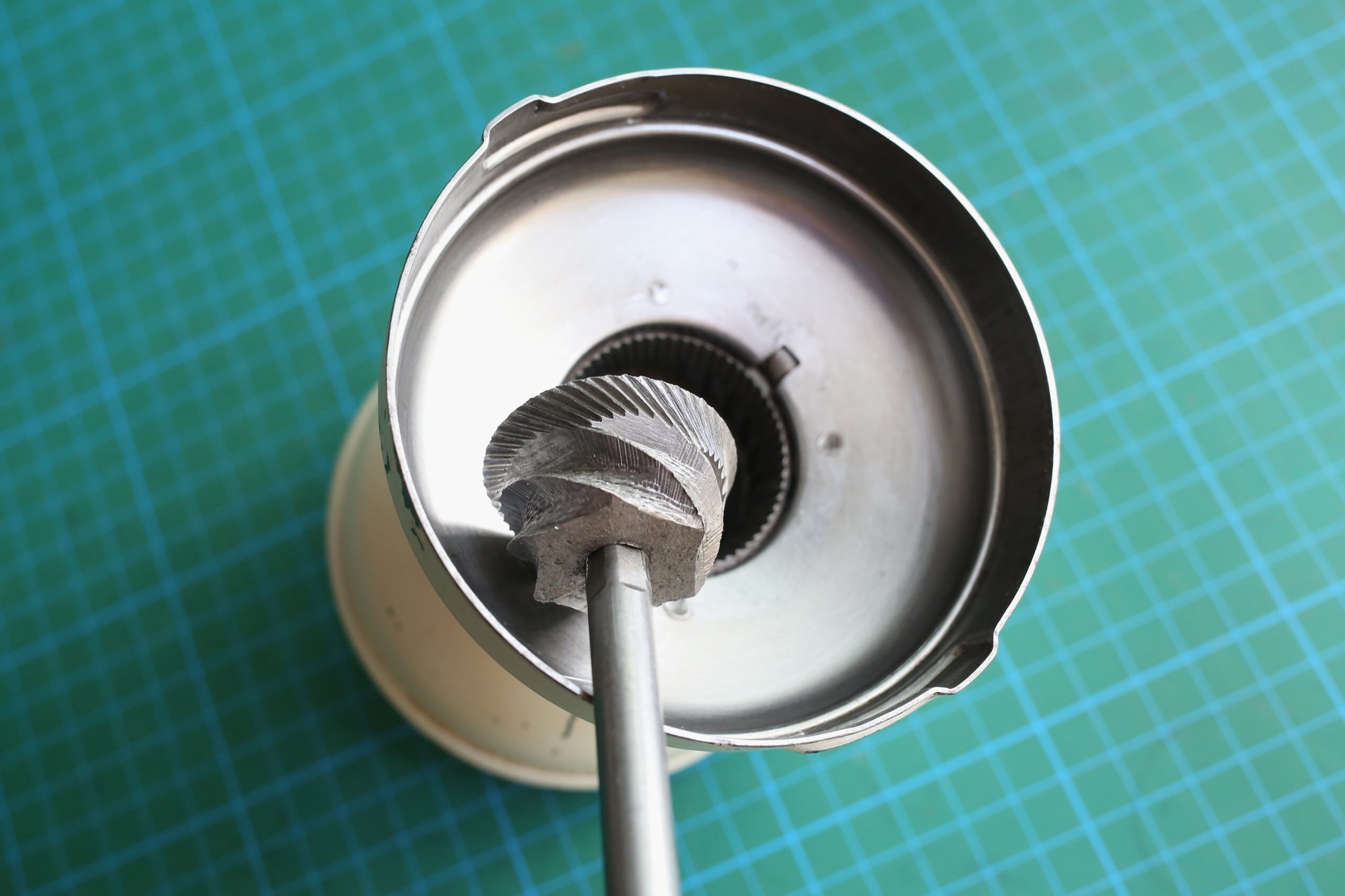 上部で挽き加減の調整ができ、分解できるディアボロ後期型と同じ作りです。