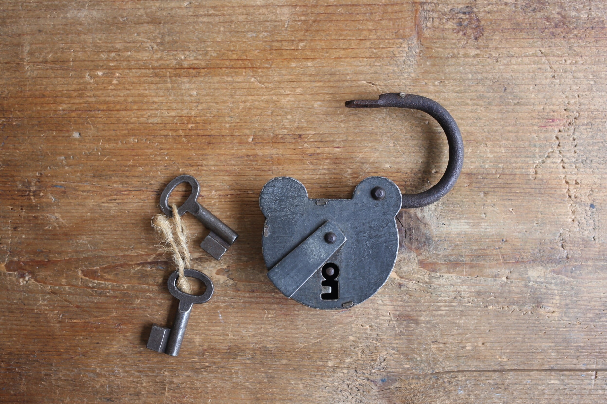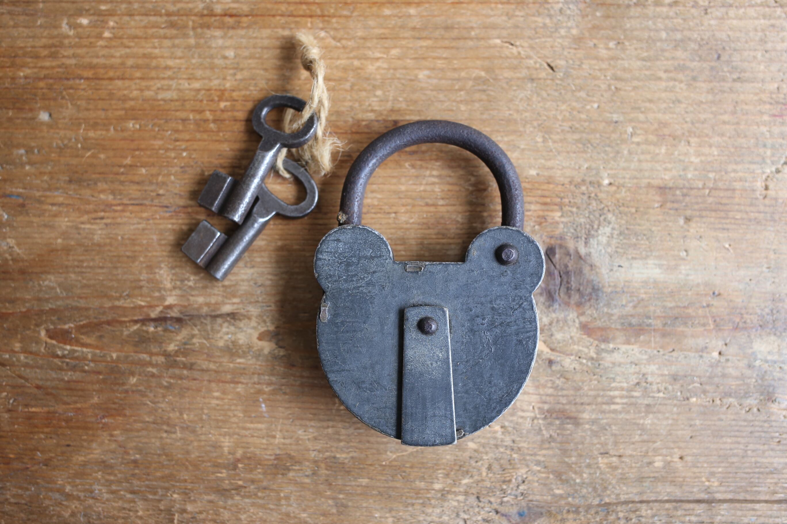 フランス アンティーク ヴィンテージ クマ型 南京錠 パドロック 鍵2本付き N-04577