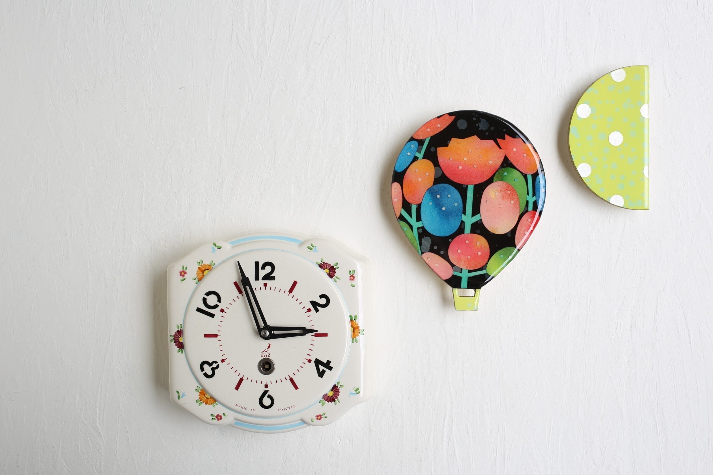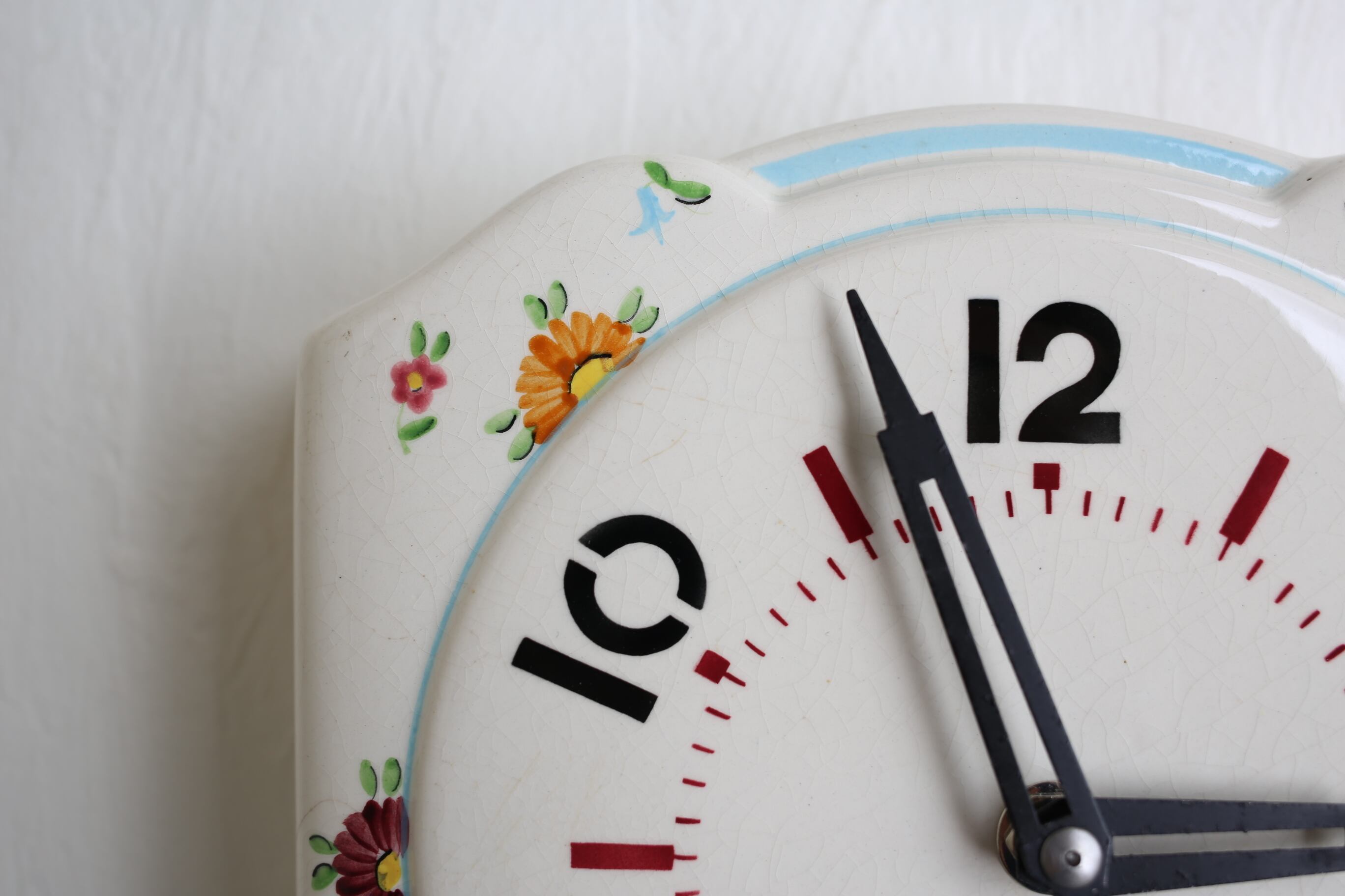 フランス JAZの1950~55年製造された『PRINTIC』というモデルの陶器製花柄の壁掛け時計です。