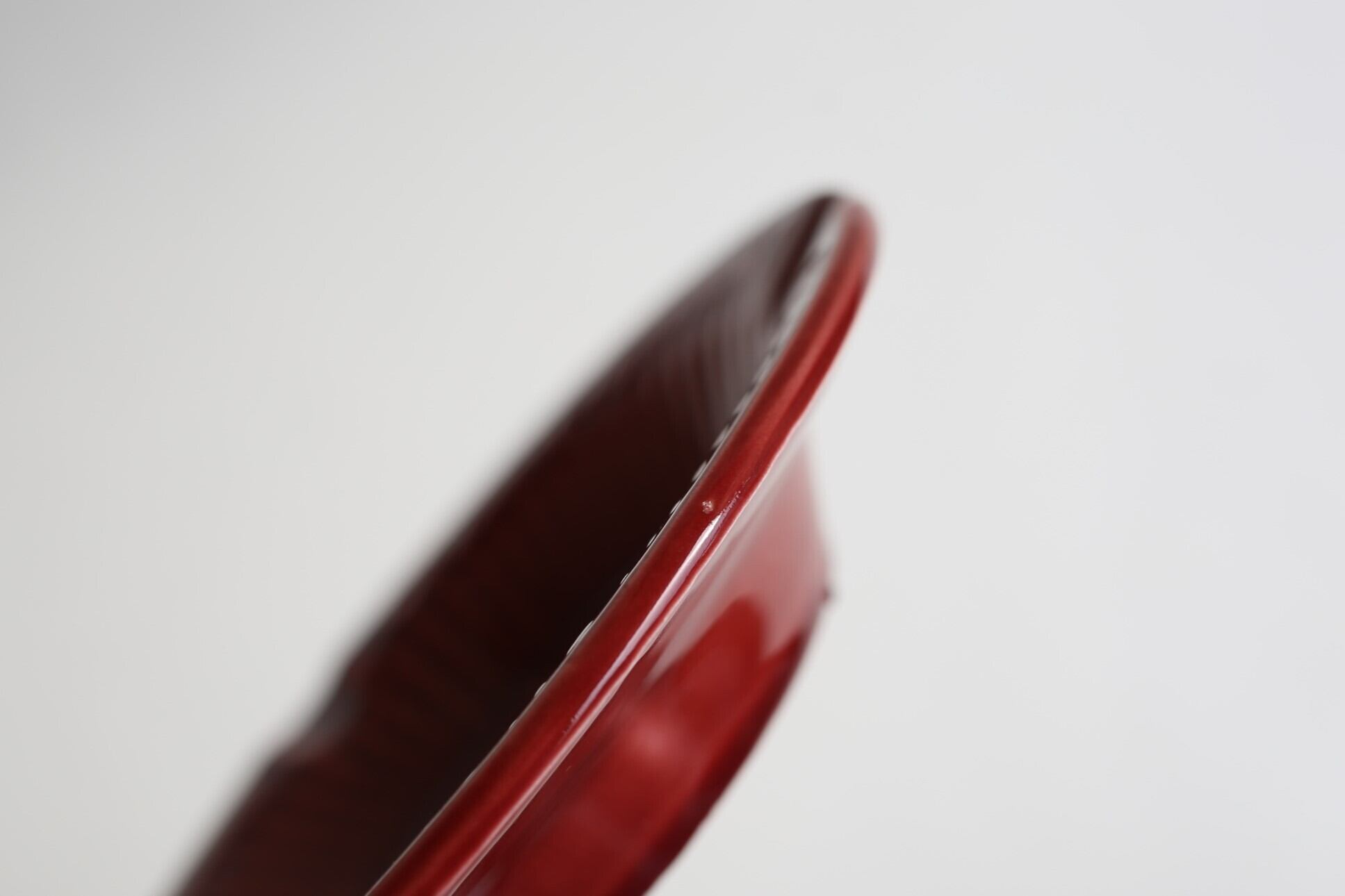 王冠の上に「REINE DES BIERES(ビールの女王)」と書かれたデザインと落ちついたボルドーの色味、釉薬の光沢が良い雰囲気です。