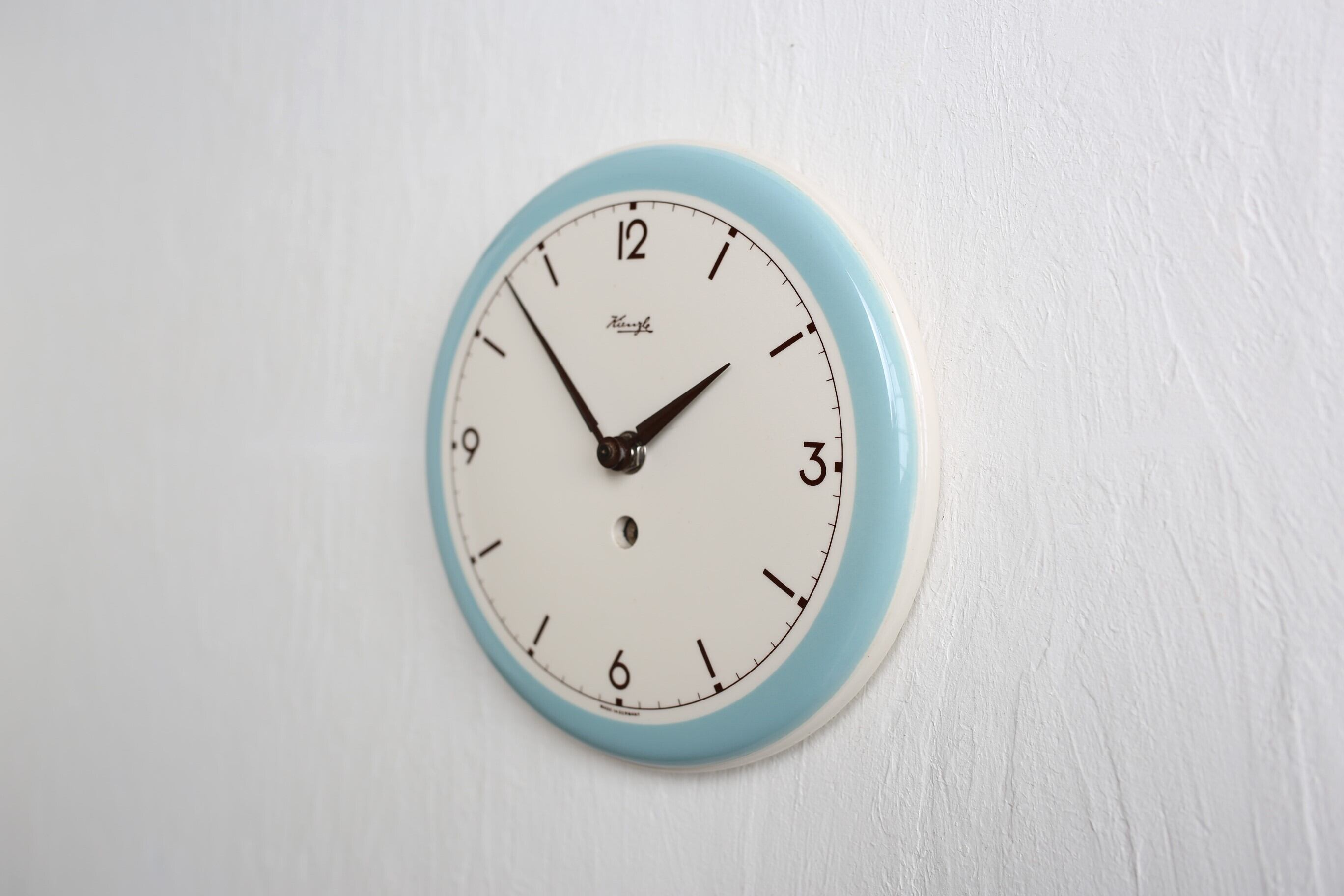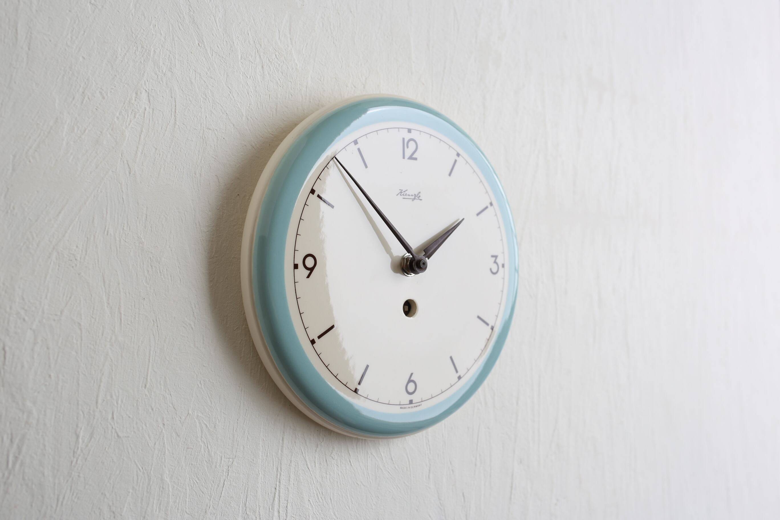 ドイツ アンティーク ヴィンテージ Kienzle 陶器製 掛時計 円型 (単3電池式クォーツ交換済)N-04704