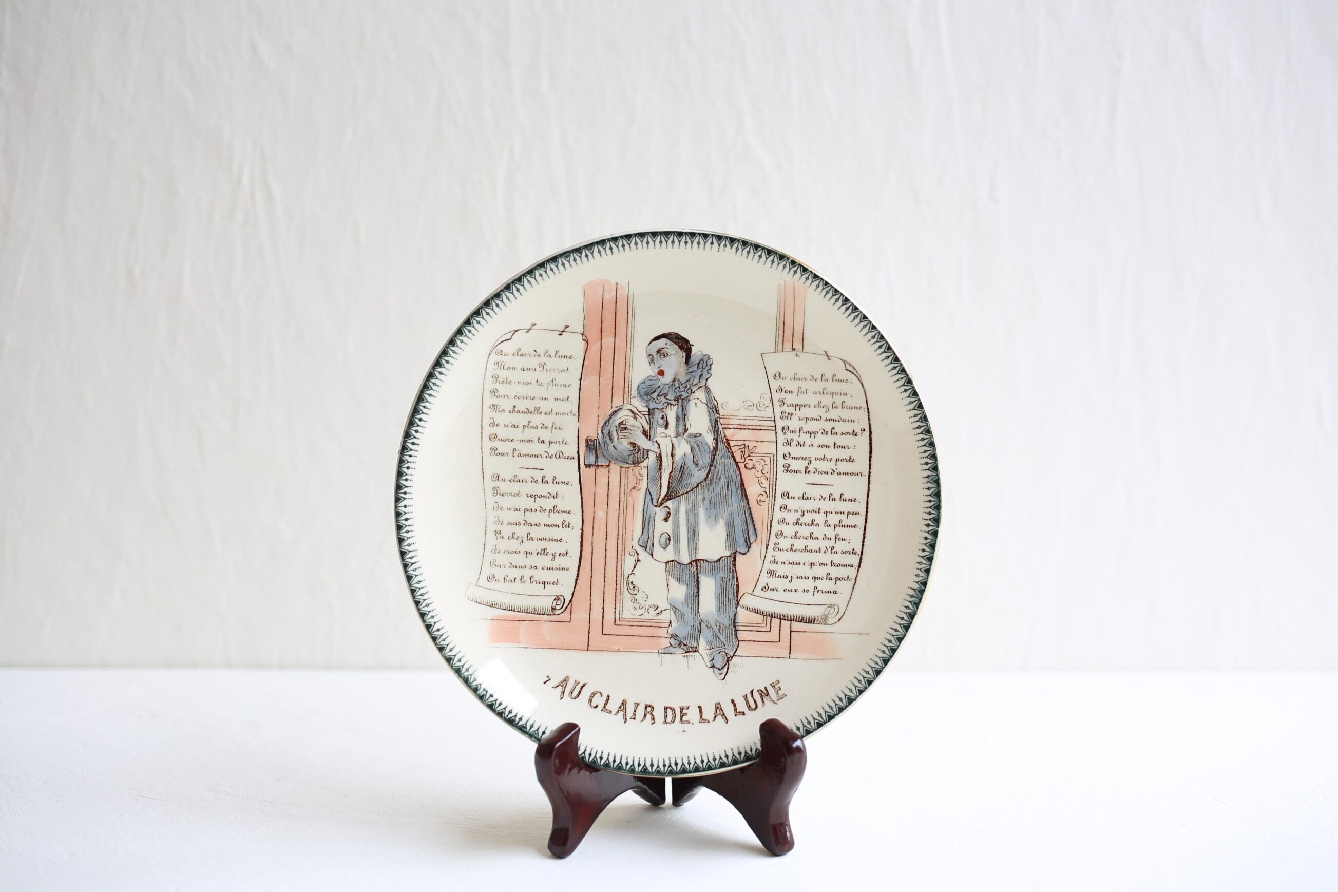 フランス アンティーク Choisy le Roi ショワジールロワ『AU CLAIR DE LA LUNE(月の光に)』ピエロ絵皿 N-04551