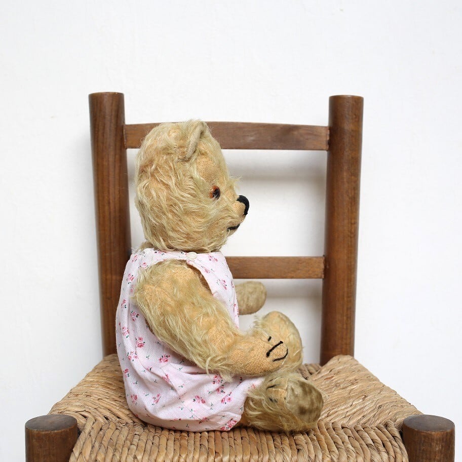 モヘアロスや多少の汚れはありますが、長い間、大切に可愛がられてきた古いテディベアならではの趣きのある可愛らしい子です。