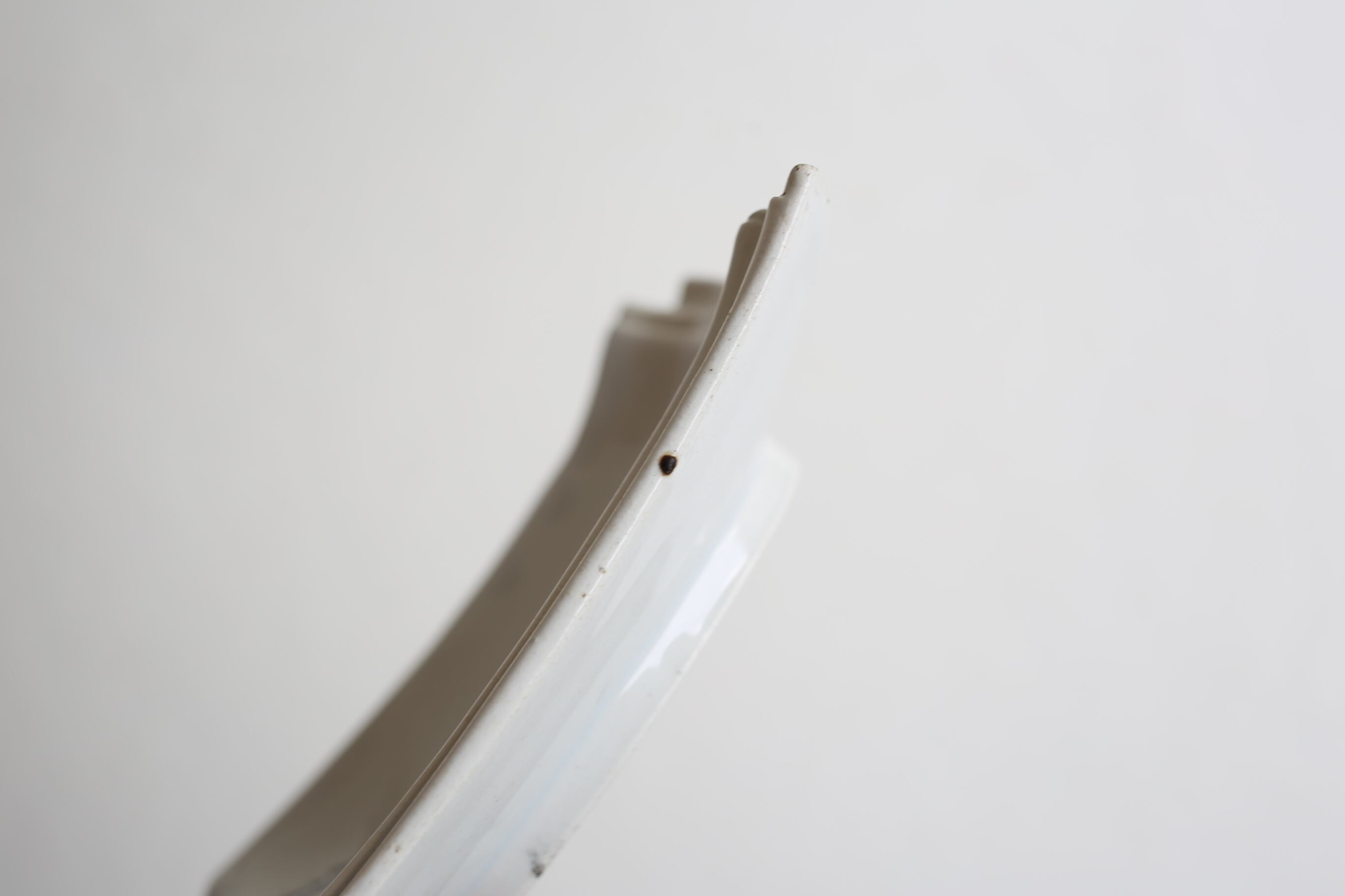 左手前の角に薄く剥離したようなカケがありますが、それ以外は微細なスレやキズ、製造時のムラ程度で良い状態です。