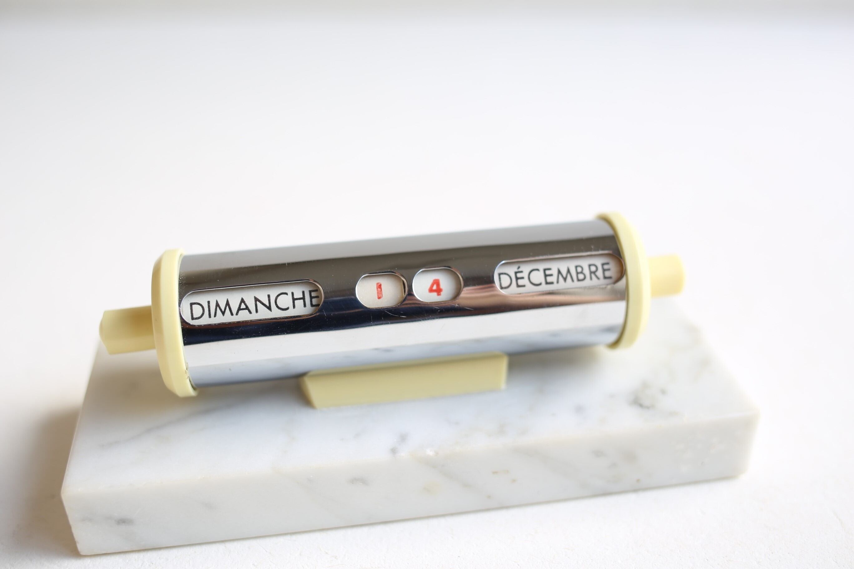 フランスで買い付けたずっしりと重みのある万年卓上カレンダーです。