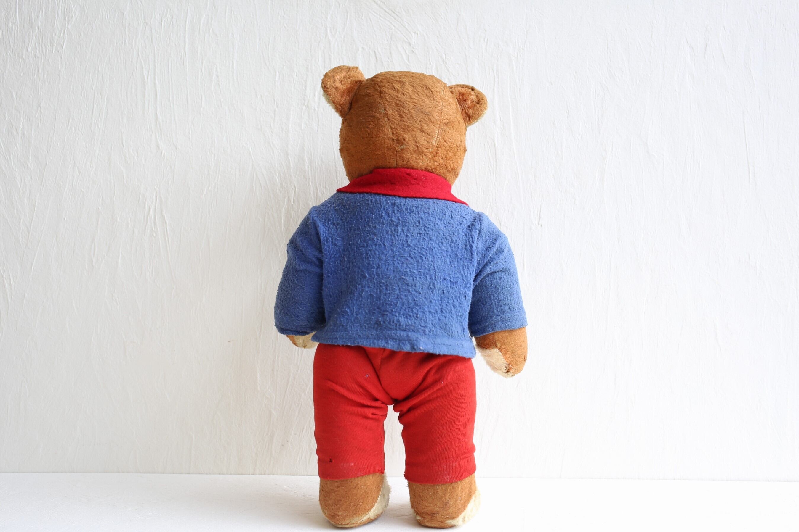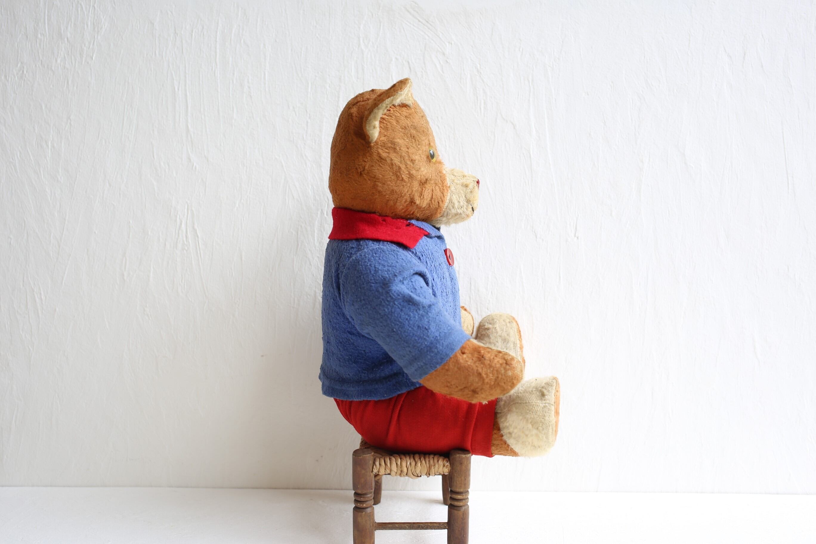 フランス アンティーク ヴィンテージ テディベア 赤鼻の洋服を着たベア 約38cm N-04776
