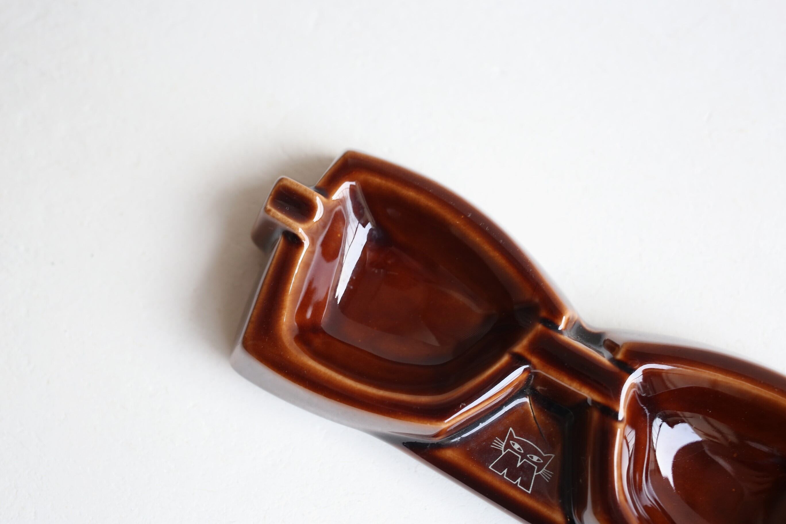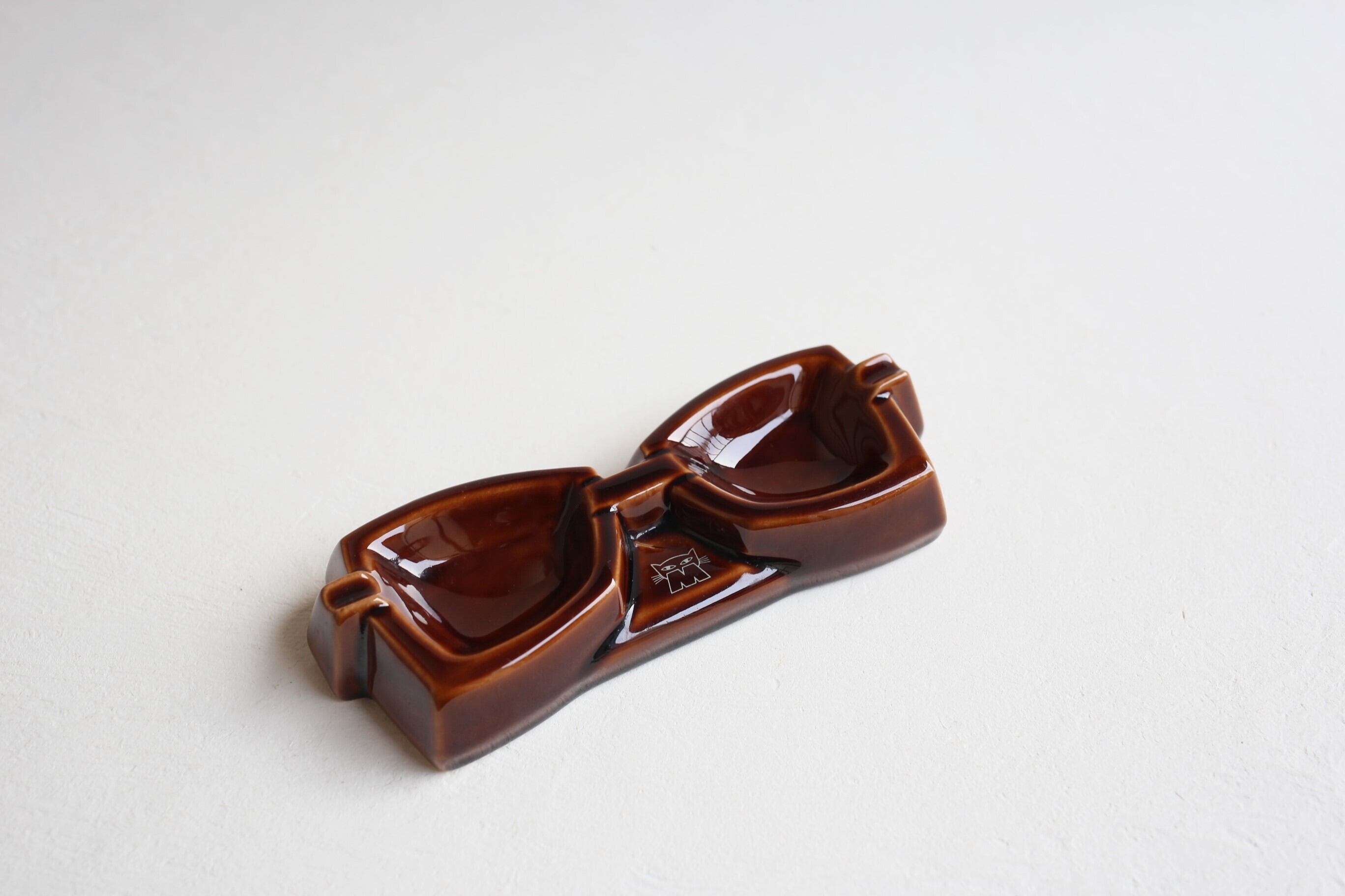 フランス アンティーク ヴィンテージ 『Marius MOREL』 メガネ型 陶器 灰皿 N-04846