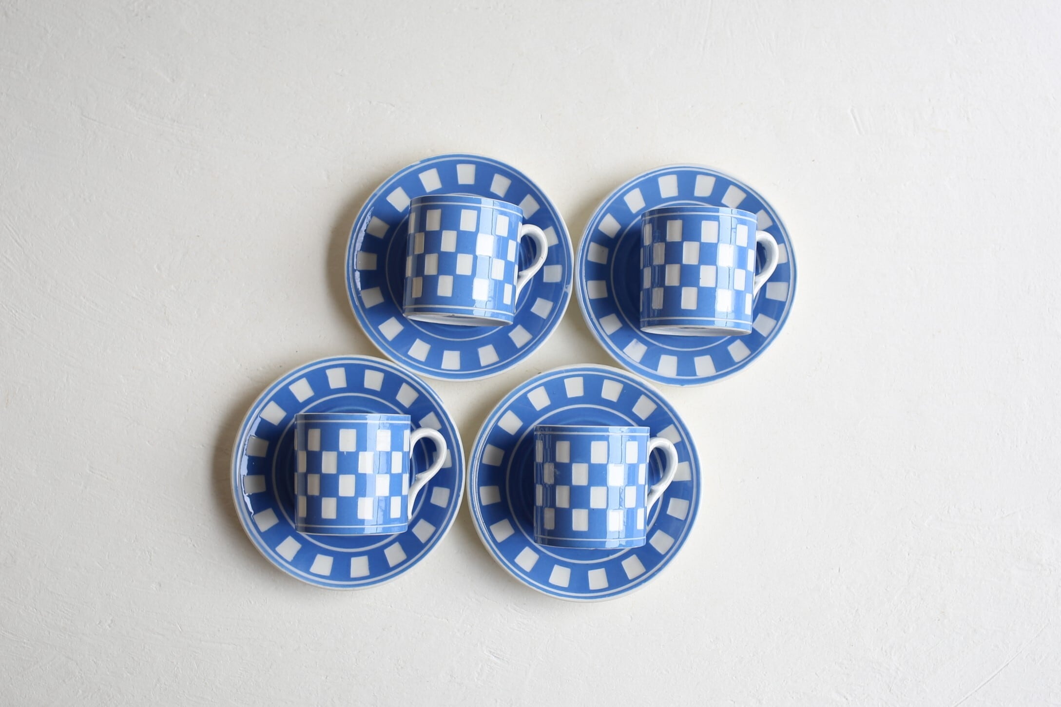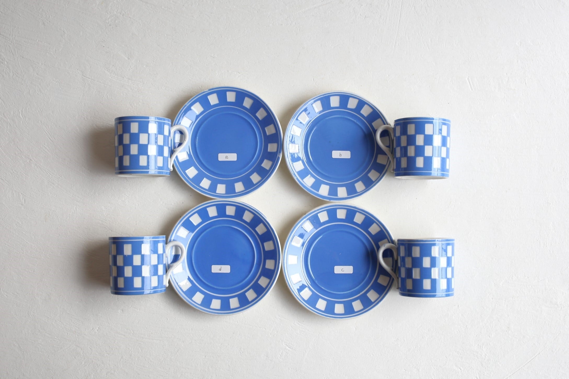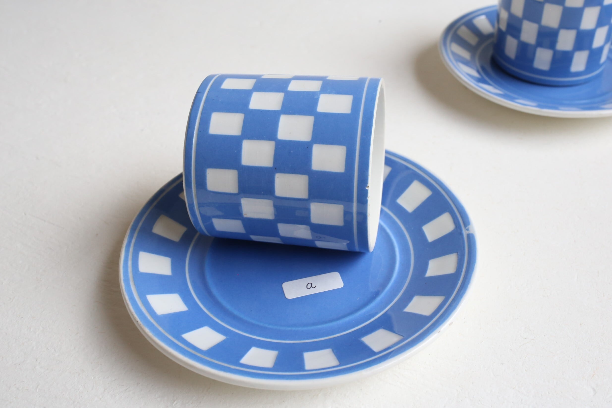 フランス アンティーク ヴィンテージ DIGOIN&SARREGUEMINES ダミエ柄 市松模様 カップ&ソーサーN-05108
