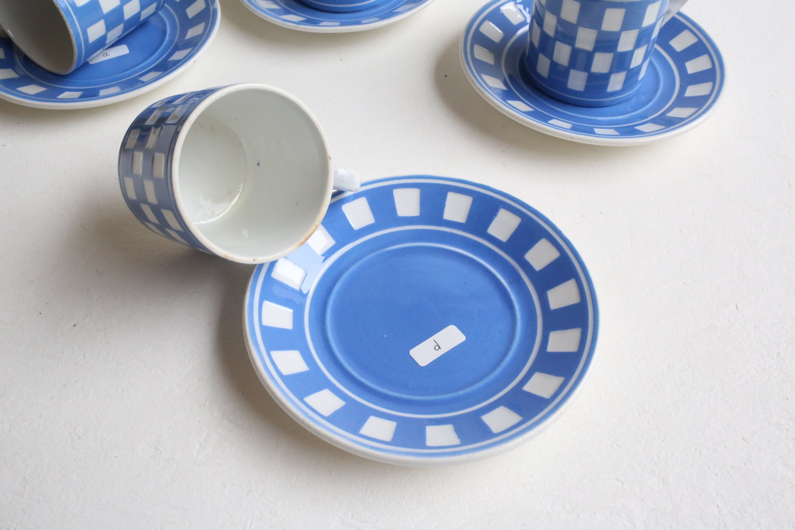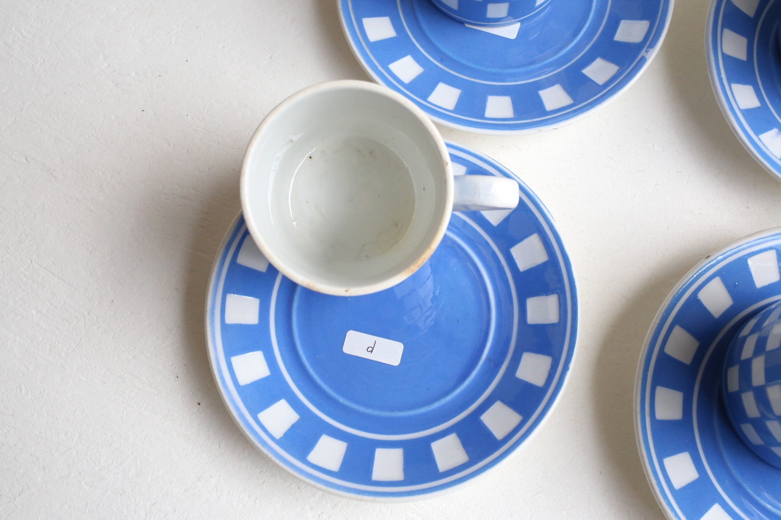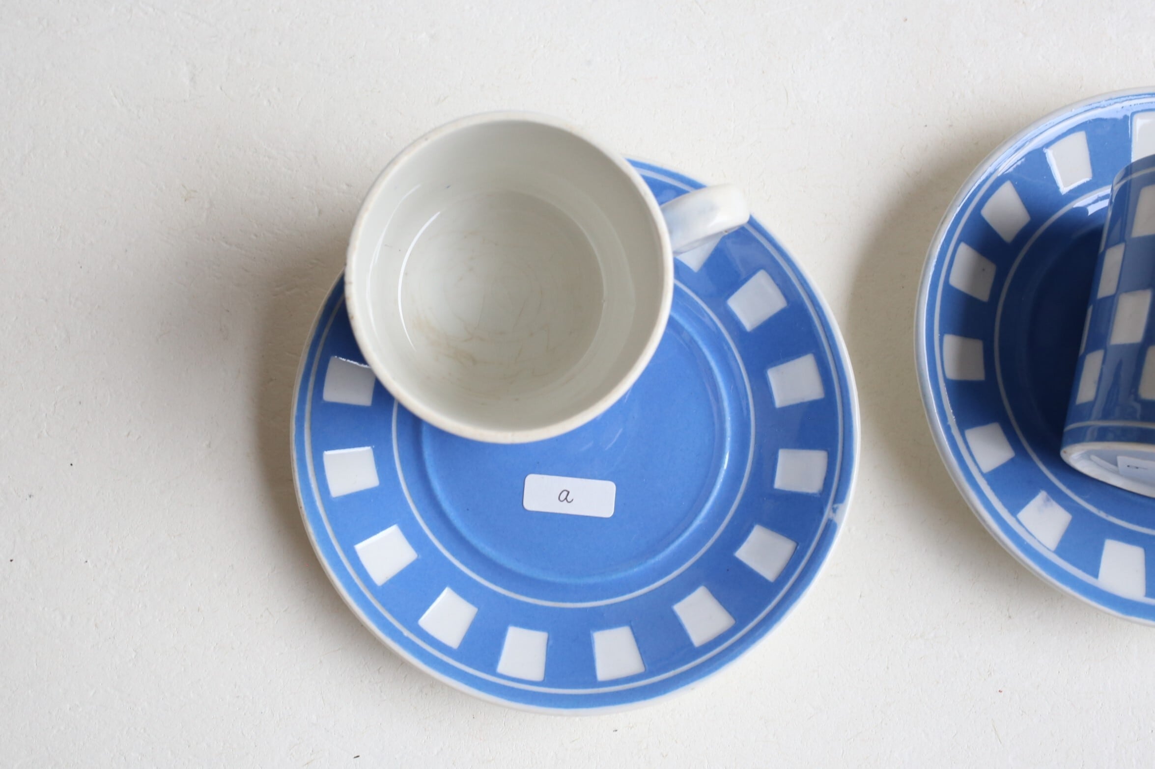 フランス アンティーク ヴィンテージ DIGOIN&SARREGUEMINES ダミエ柄 市松模様 カップ&ソーサーN-05108