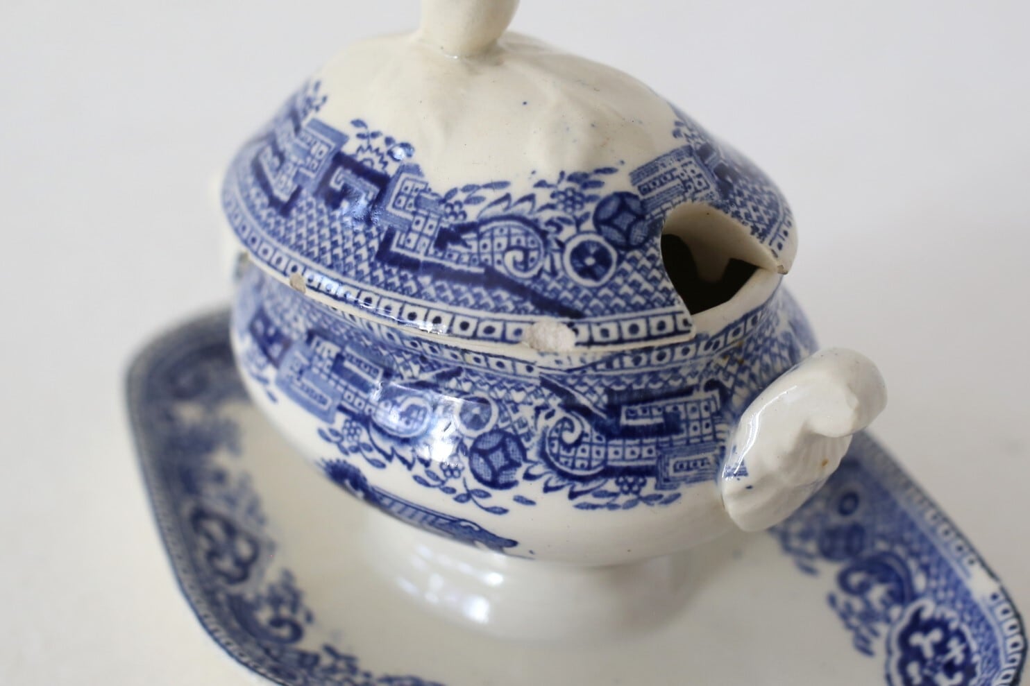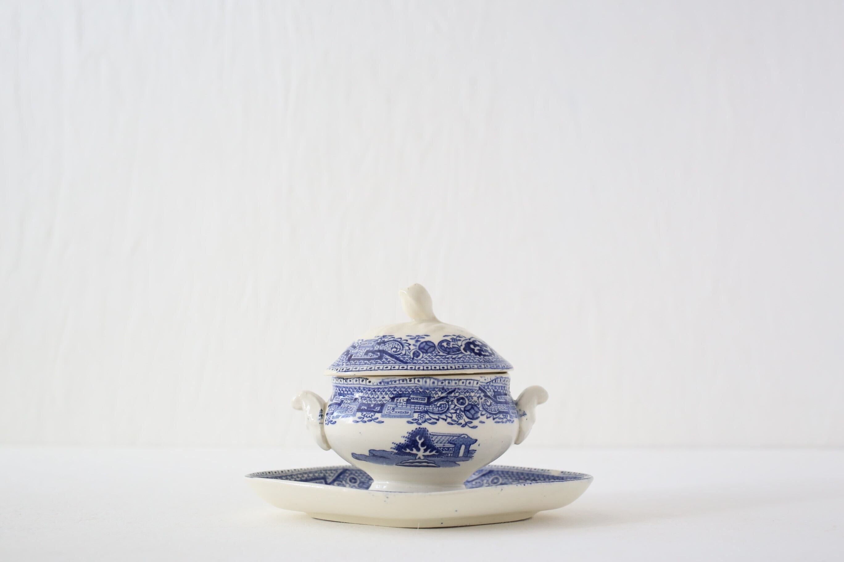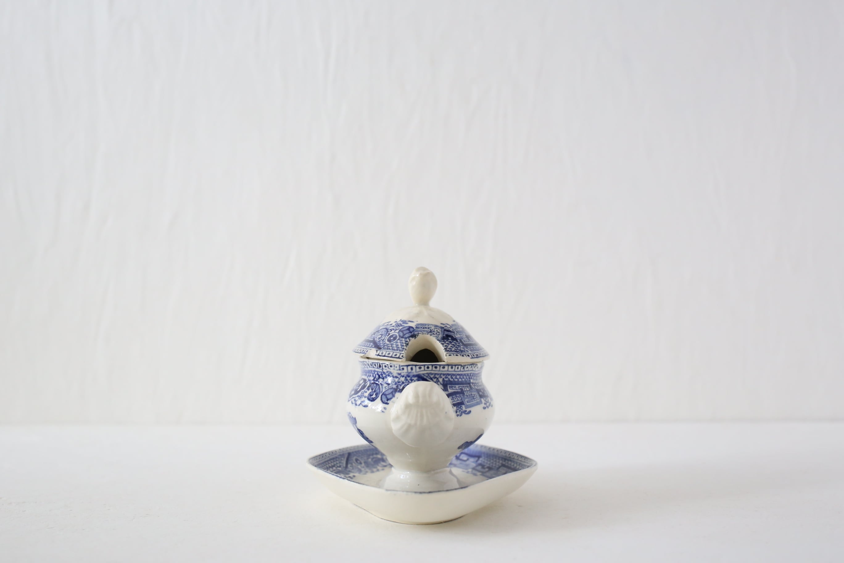 こちらも美しいフォルムの陶器にブルーの絵柄(ブルーウィロー)が映える素敵なマスタード入れです。