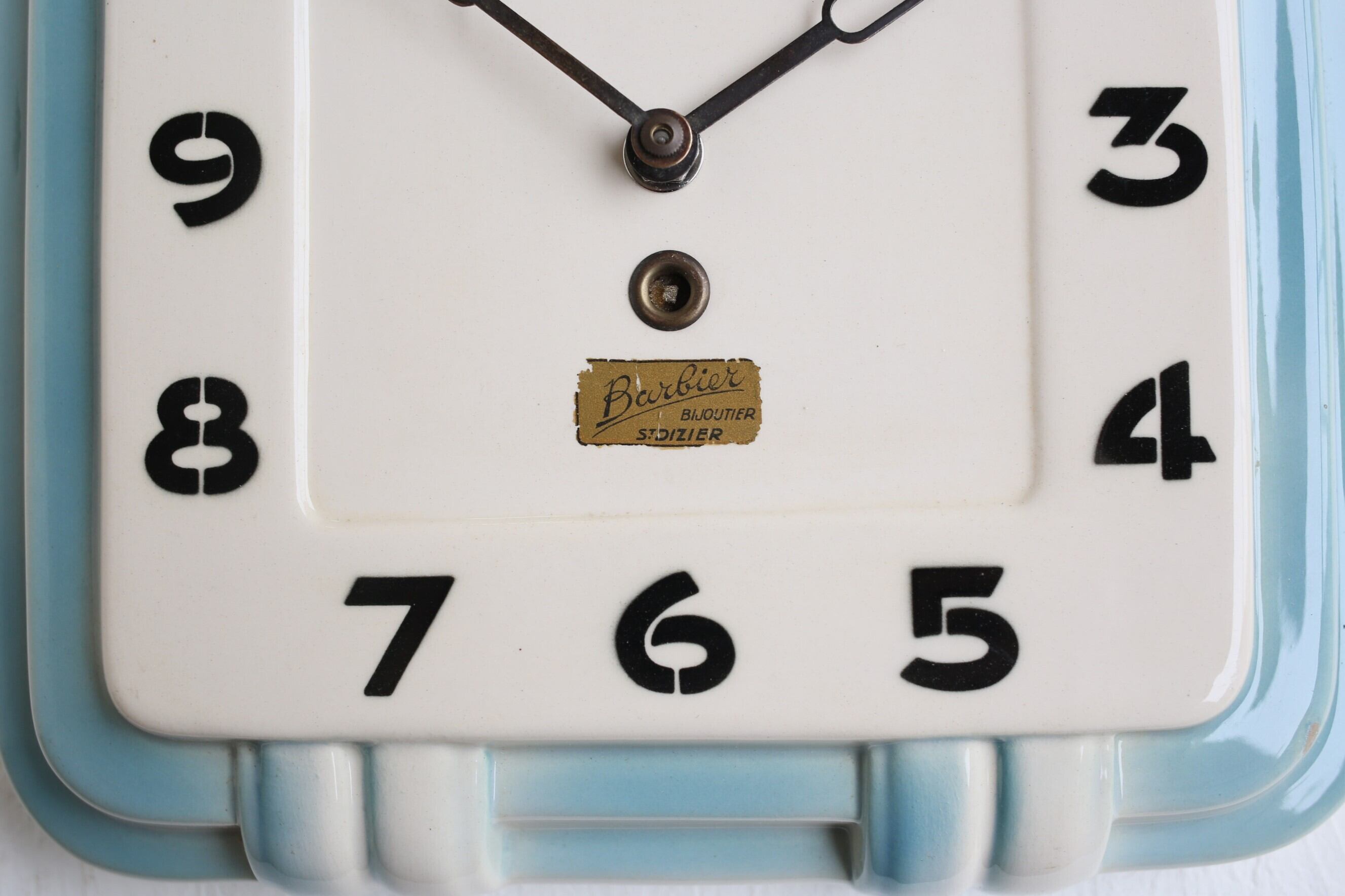 フランス アンティーク ヴィンテージ BAYARD 陶器製 掛時計 アールデコ調 スクエア型 (単3電池式クォーツ交換済) N-04856