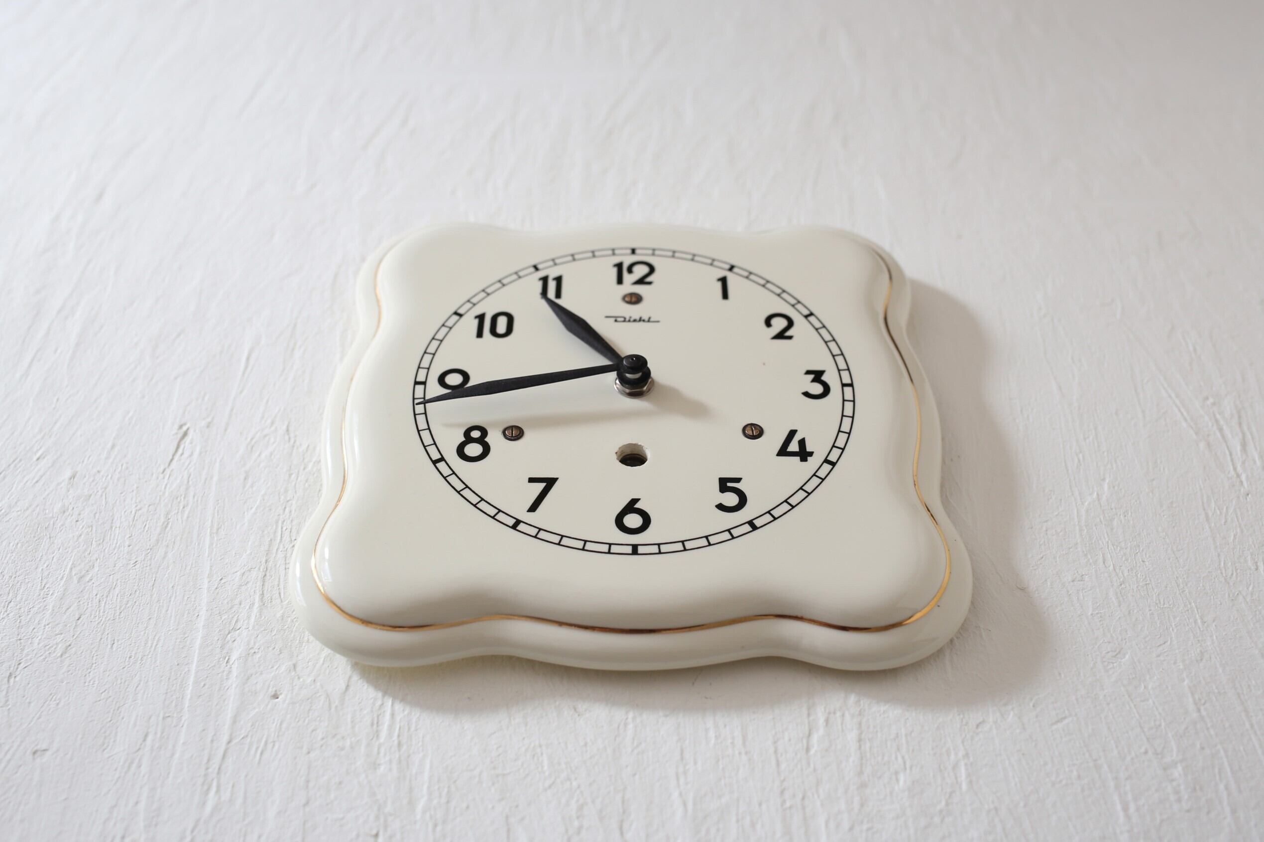 ドイツ アンティーク ヴィンテージ Diehl 陶器 掛時計 アイボリー×ゴールド(スイープ式クォーツ交換済)N-05106